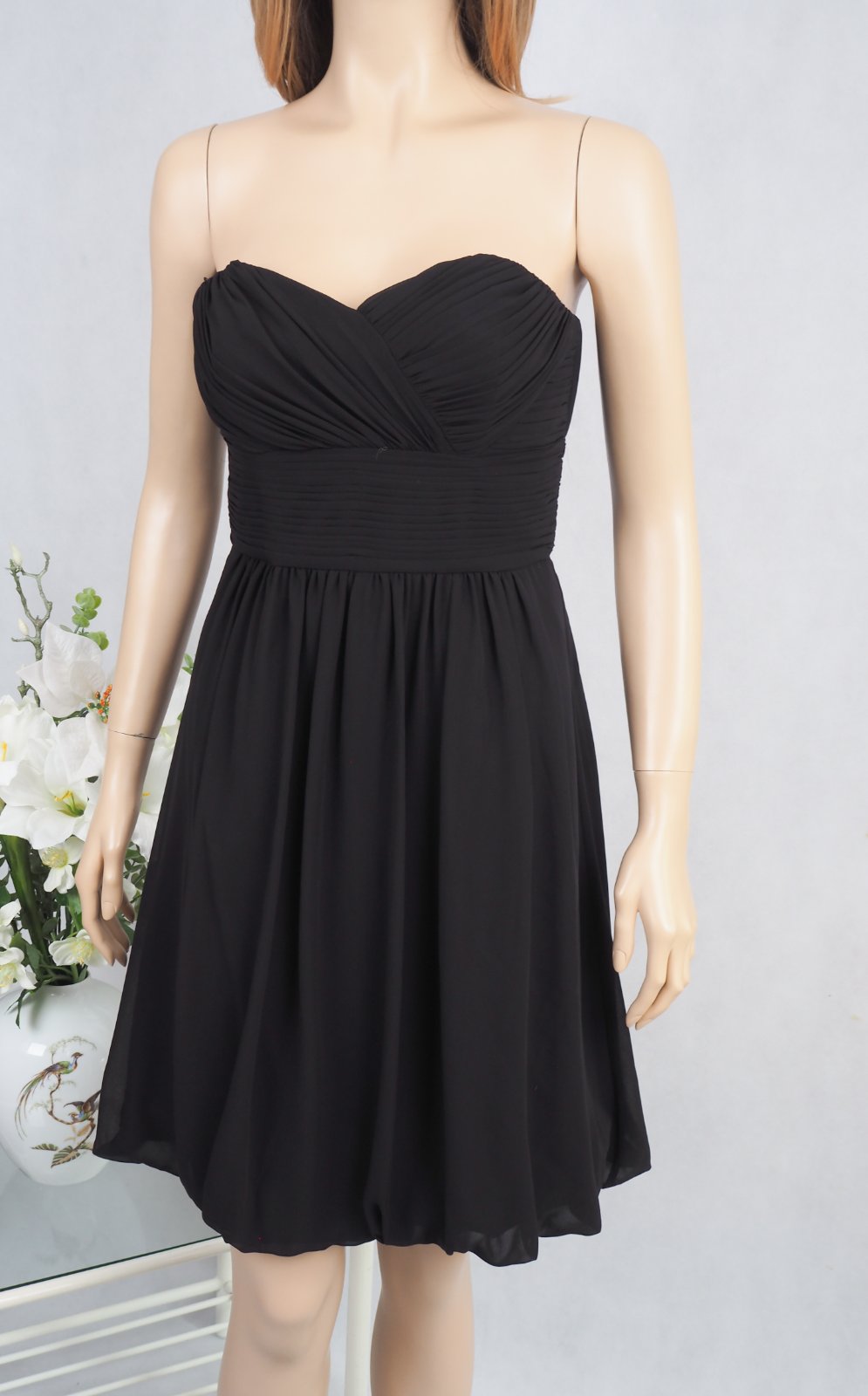 Kvalitné čierne elegantné šaty, zvršok nariasený, sukňová časť s puf efektom, materiál 100% polyester, super stav.