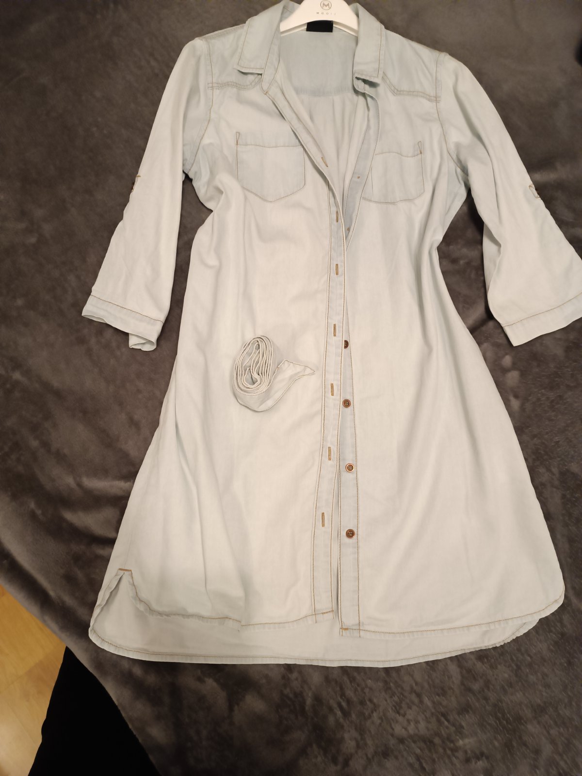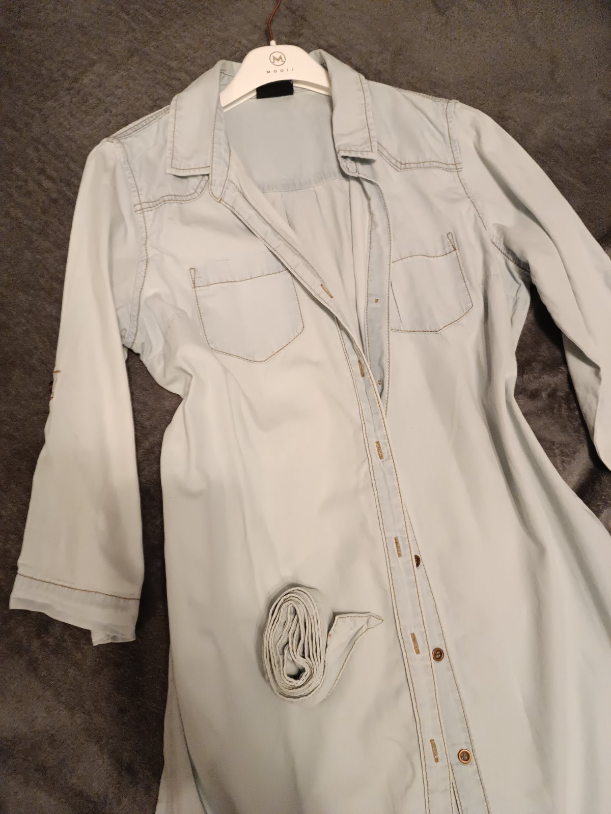 Predám svetlomodré košeľové šaty s opaskom zn. Jean Pascale. Materiál ako tenká jeansovina.
