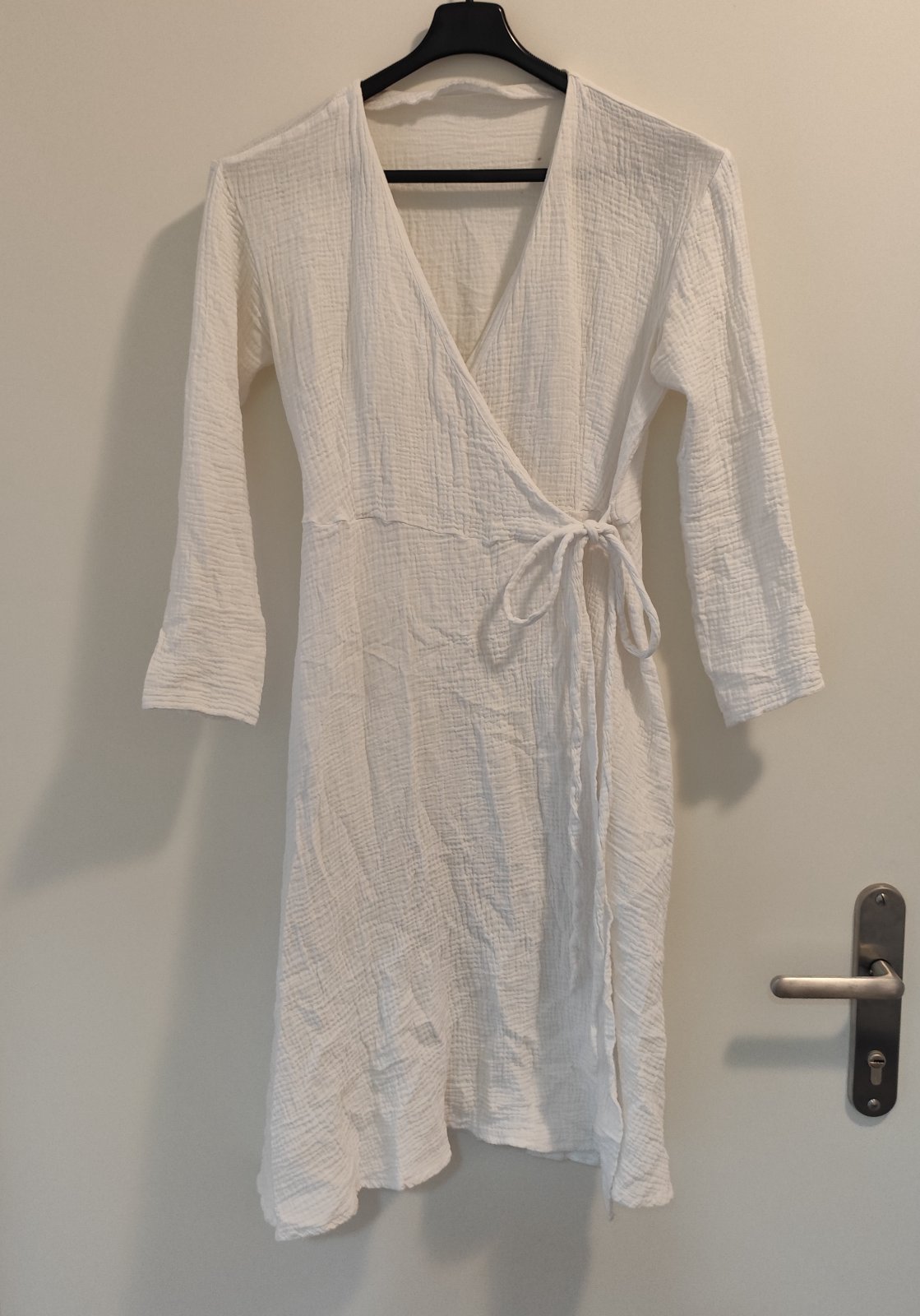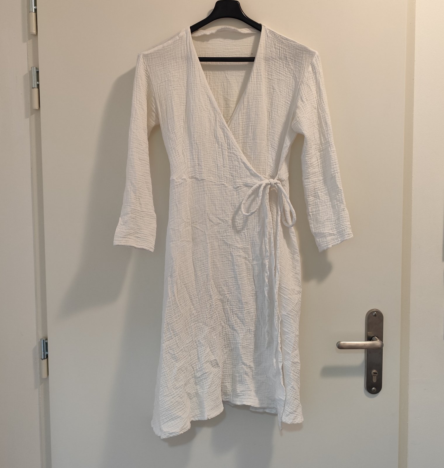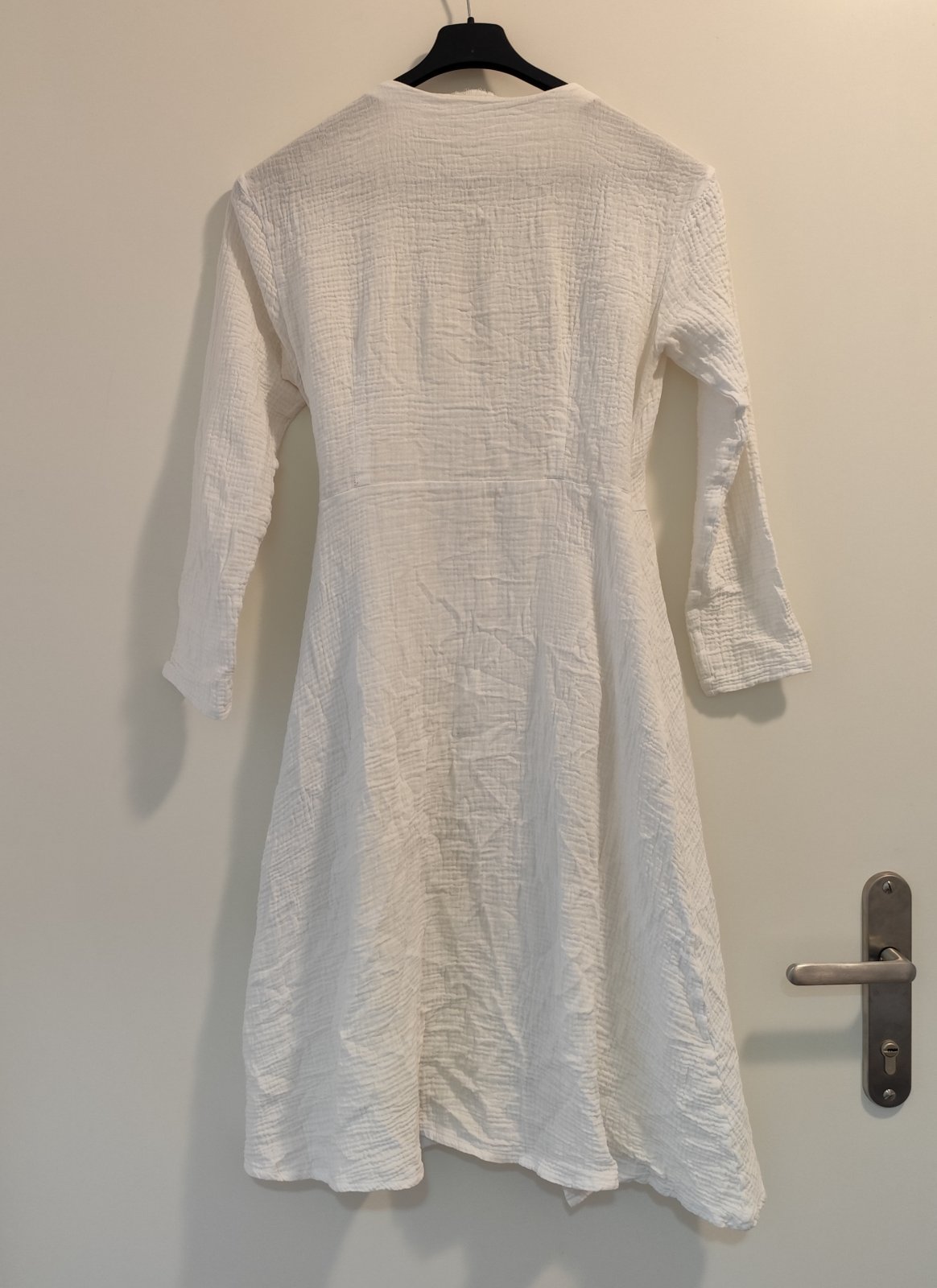 Šaty majú dva fliačiky, ktoré sú však zvnútra a pri nosení ich vôbec nevidno a trochu zažltnuté popod pazuchy, preto cena oproti pôvodnej oveľa nižšia.