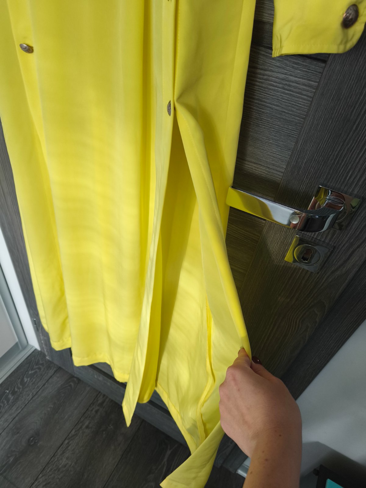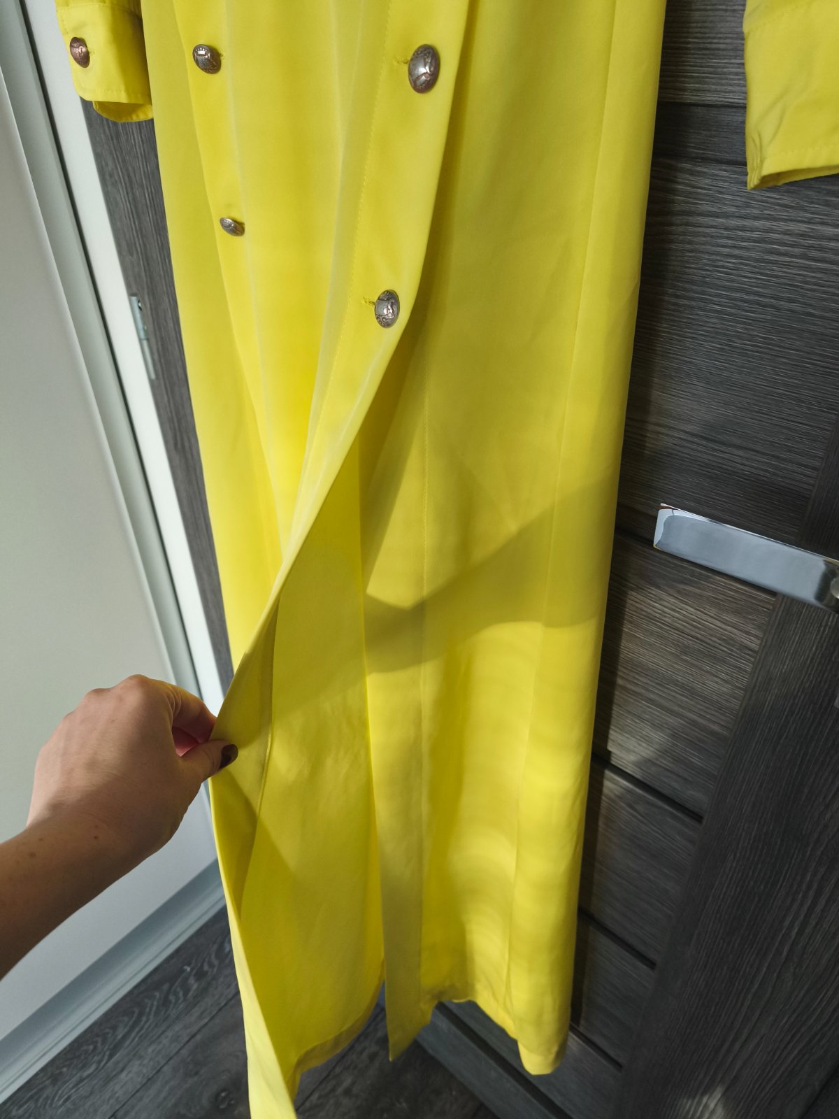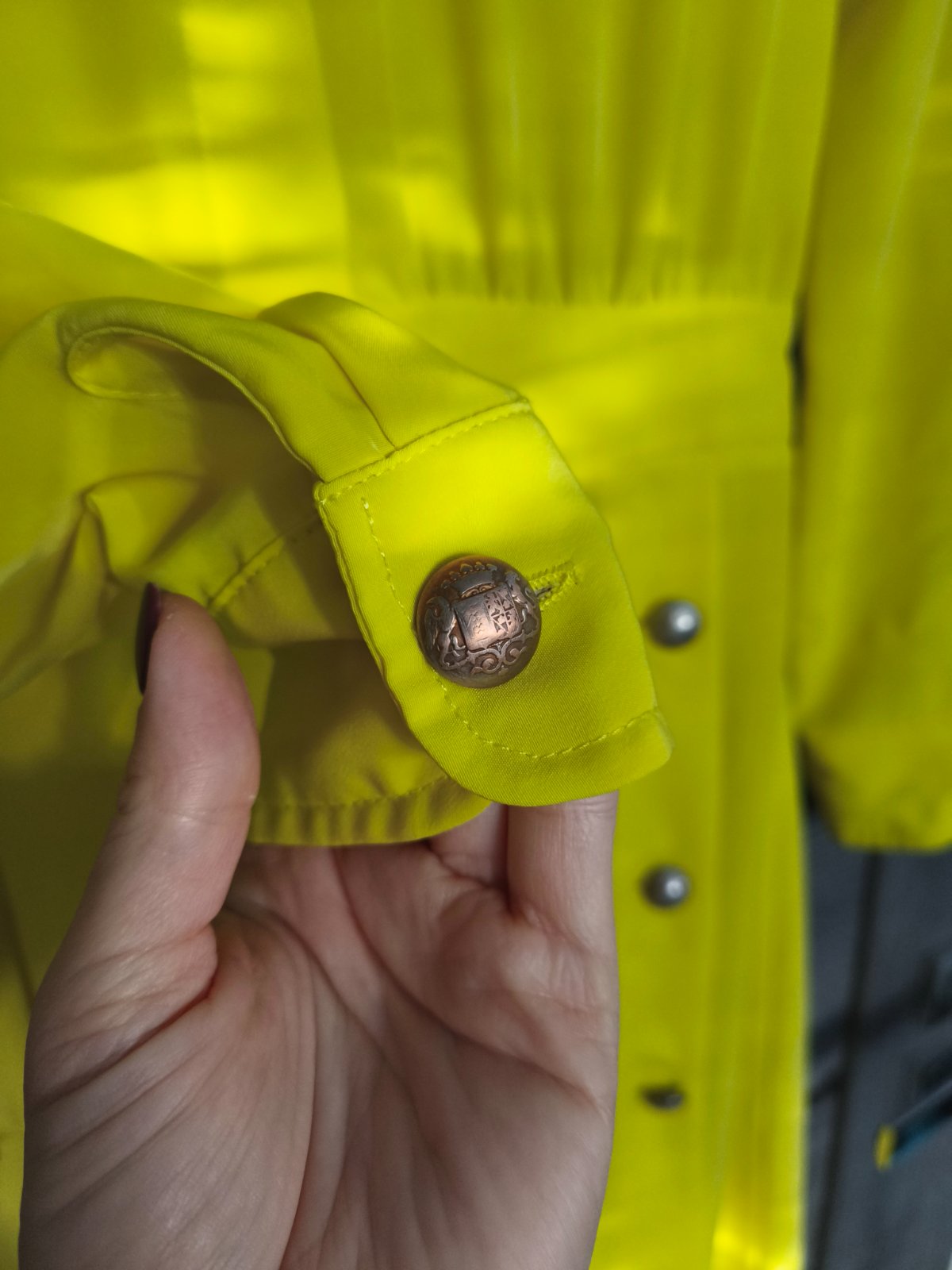 Krasne saty luxusnej znacky Imperial velkost S pekne ukazu skor na vysokej postave. Nosene no v peknon stave, gombiky uz na niektorych miestach pustili farbu ale pri noseni to vobec nie je vidiet len detailne. Maju vpredu po bokoch pekne rozparky. Povodna cena bola okolo 100€.