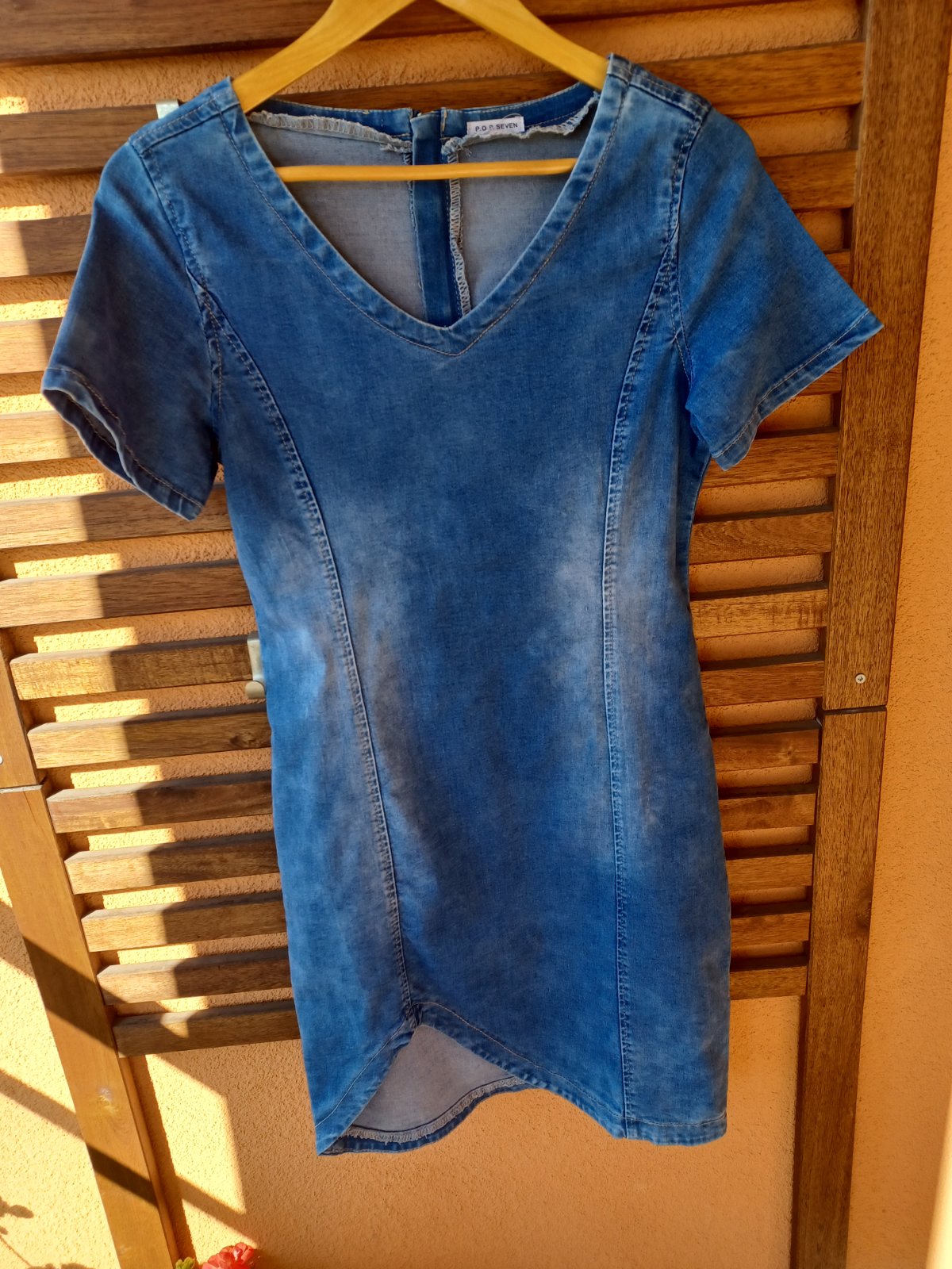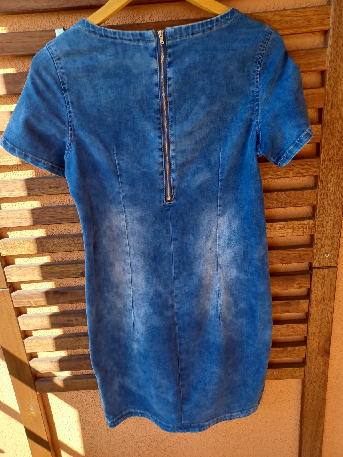 Predám riflové minišaty na gombíky, vzadu ozdobné zipsy, v. uv. XL, ale sedia na S, možno M (podľa rozmerov). Cena: 10€ + poštovné. Na dobierku nezasielam!