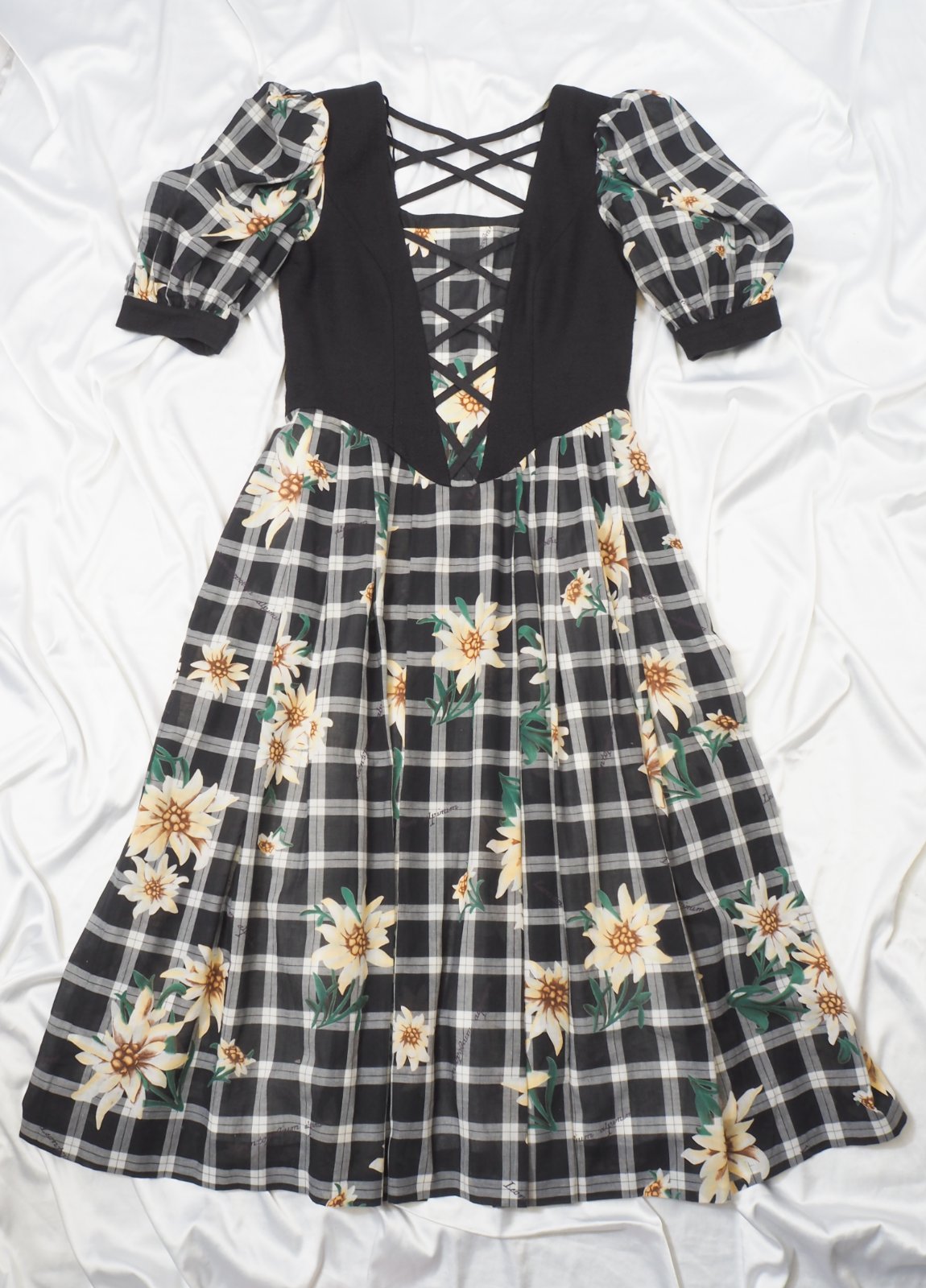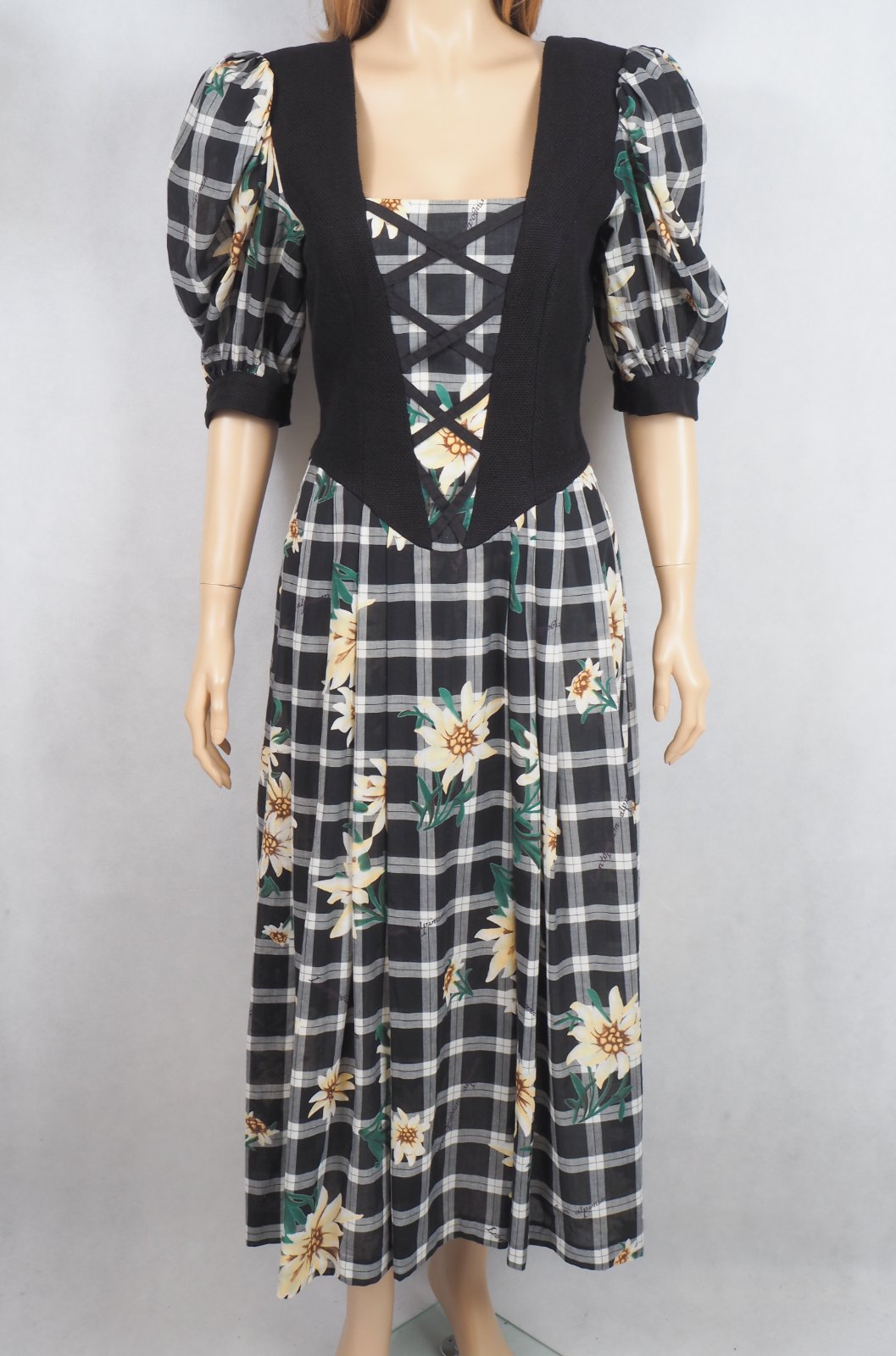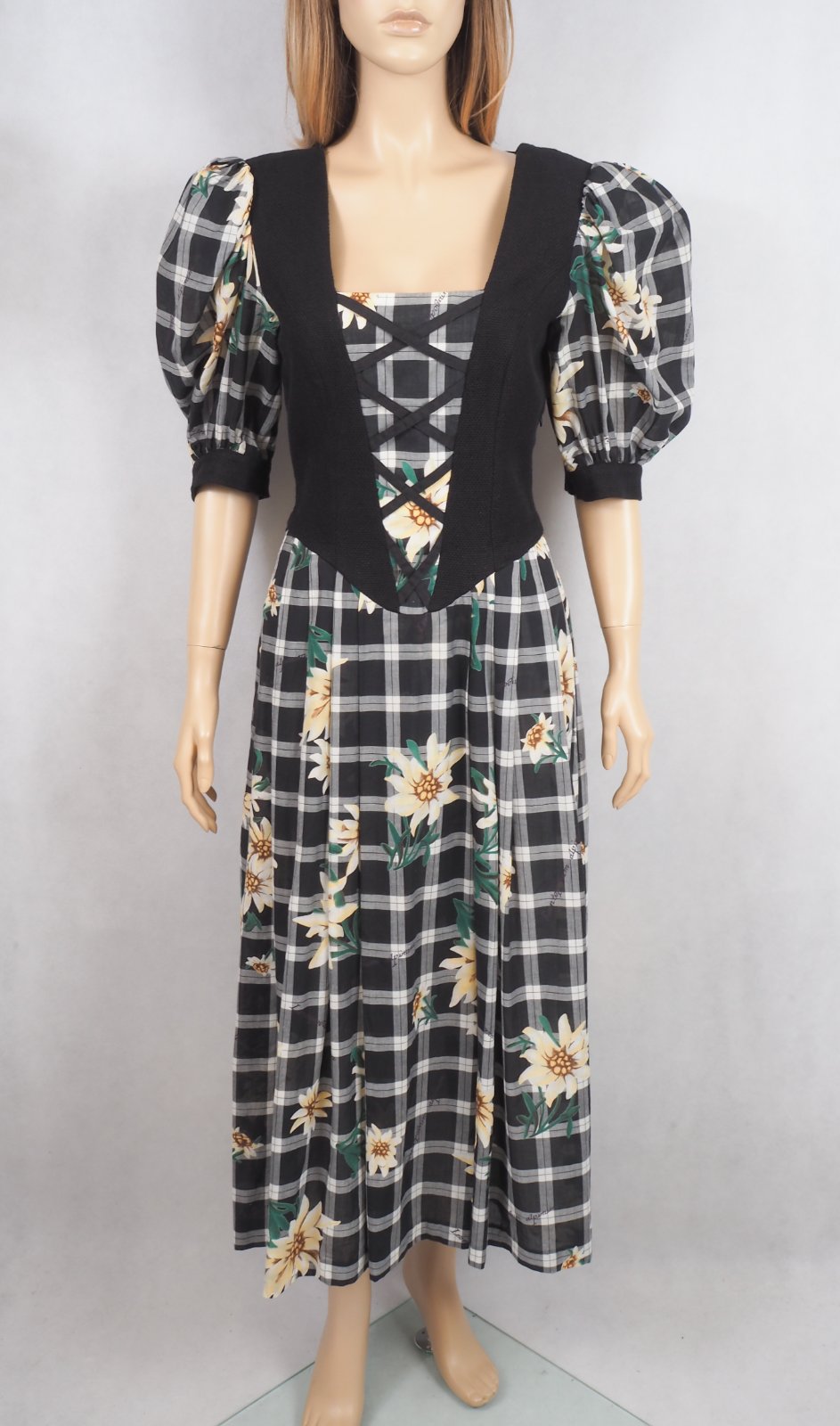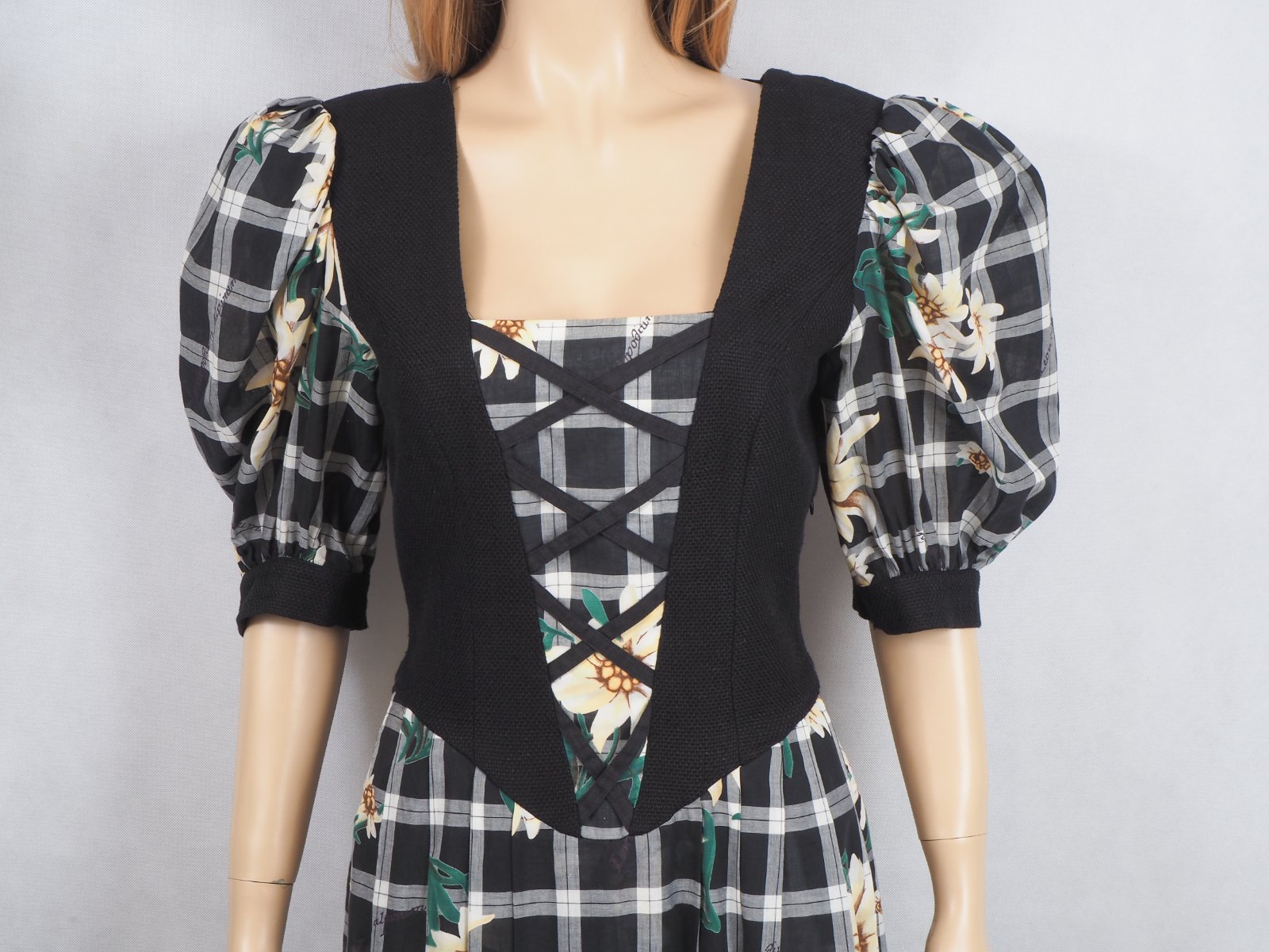 Kvalitné krojové šaty, veľ. 38/40, vzorované, nariasené rukávy, bočný zips, super stav.