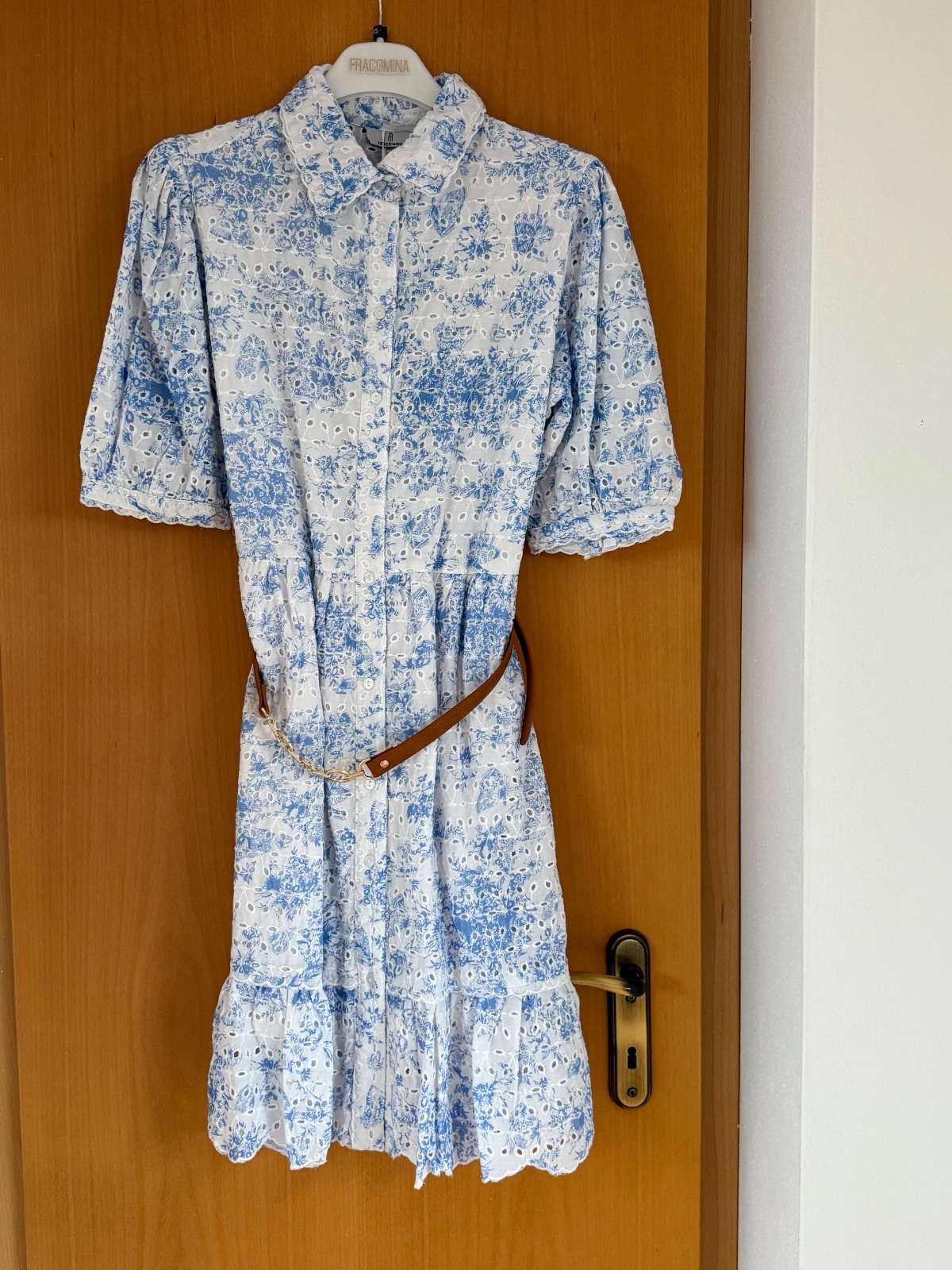Košeľové šaty Fracomina. Krásna modro-biela kombinácia. Súčasťou je aj opasok. Sedia krásne a sú vhodné aj do chladnejšieho počasia.
