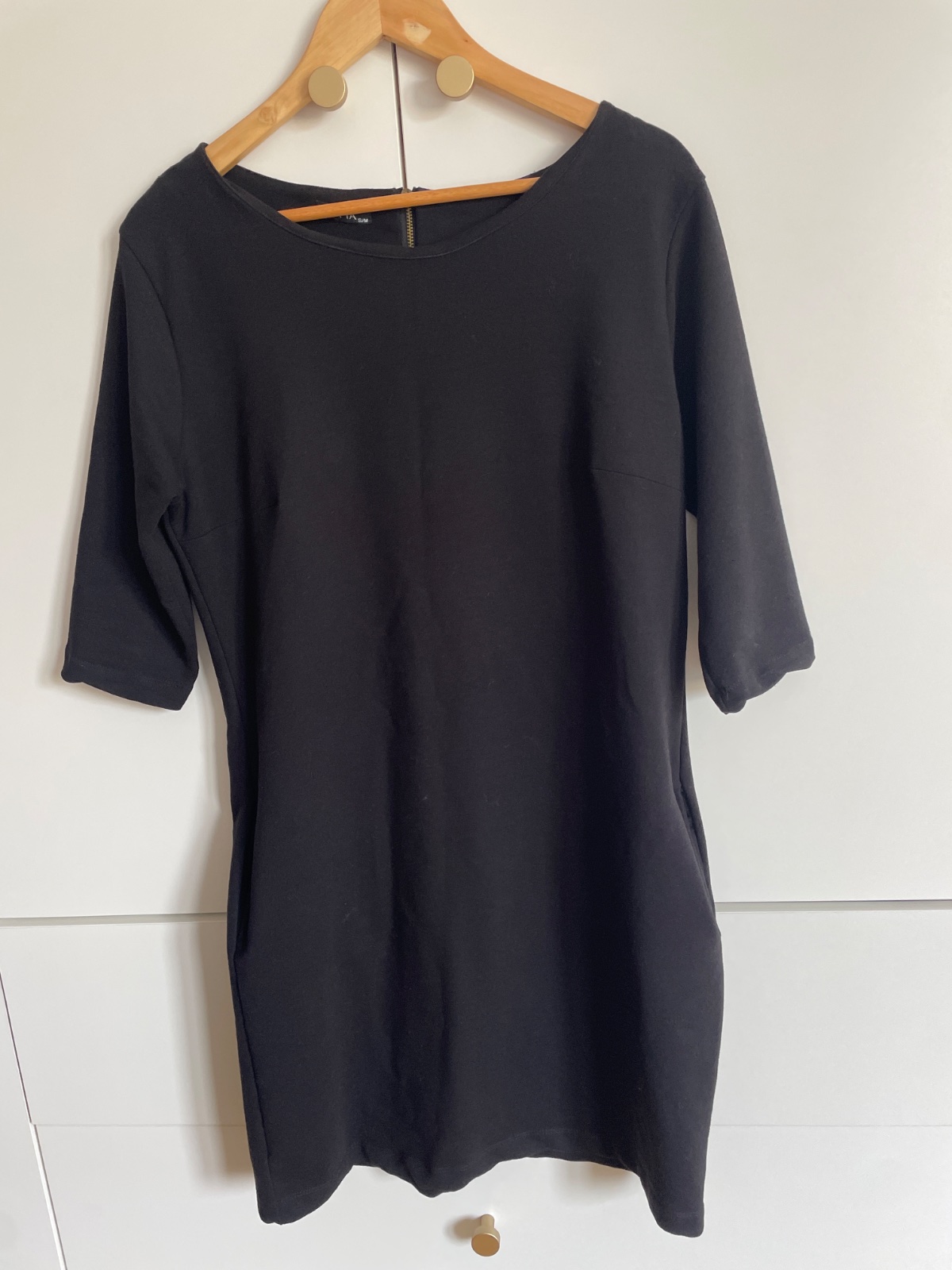Čierne šaty s 3/4 rukávmi so stojacikom, vel. 36