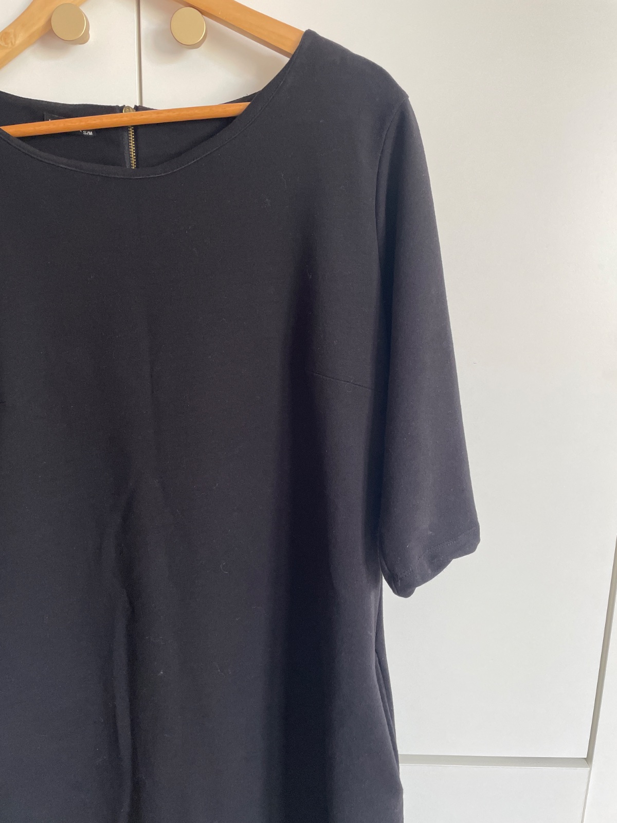 Top stav, krásna čierna farba, 3/4 rukávy, elasticky prispôsobivý materiál, šírka pod pazuchami 40-50 cm, celková dĺžka 85 cm. Nekrcivy materiál.
