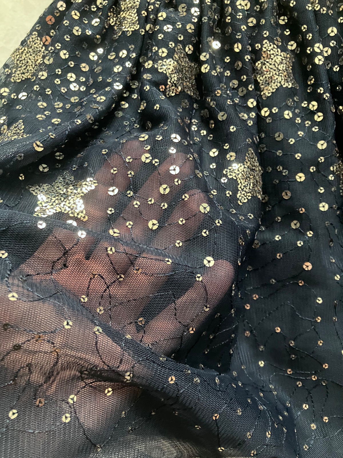 Krásna tmavomodrá farba, vrchný diel je z príjemného mäkkého materiálu, pretkávaný so zlatou nitkou.
