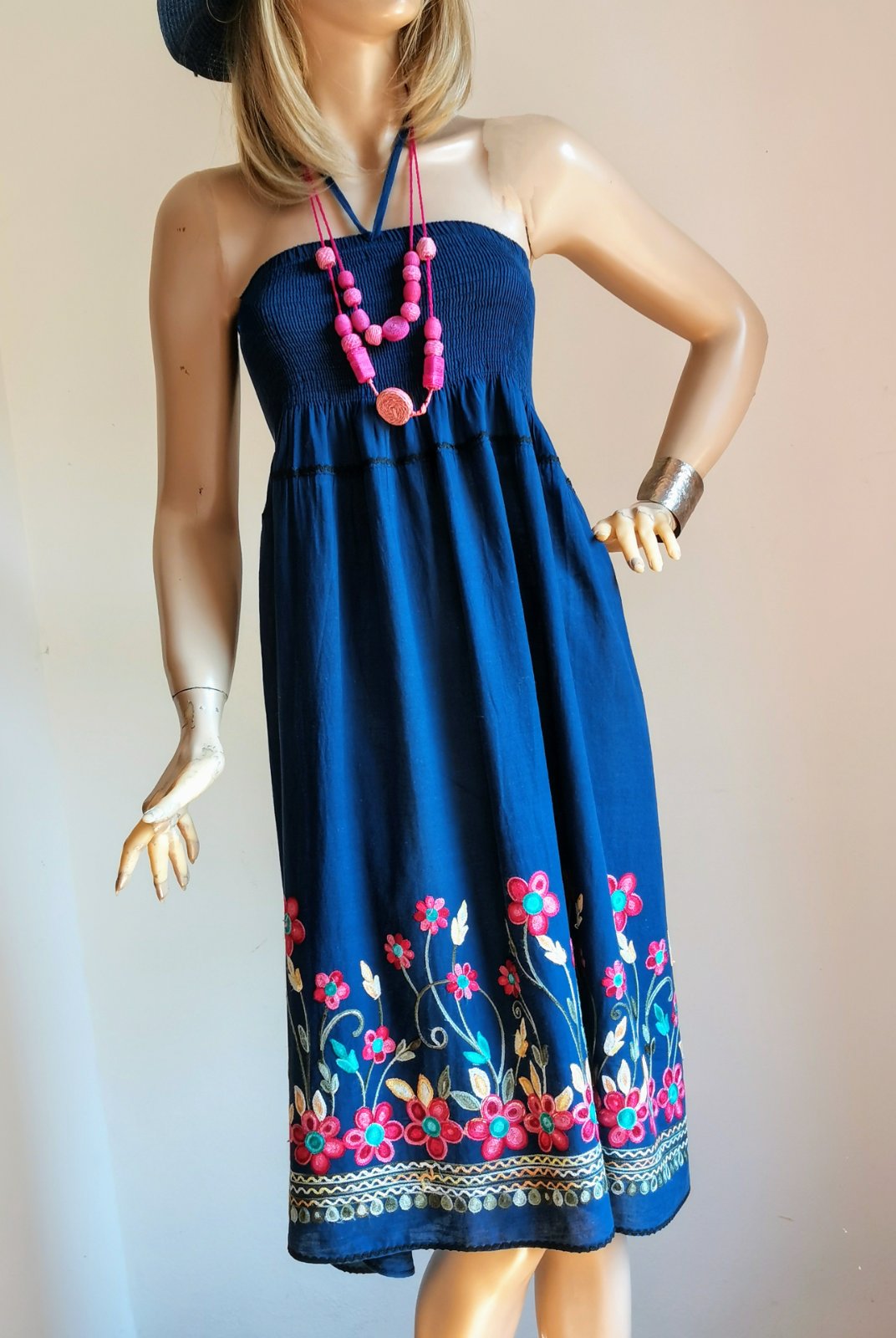 Ponúkam krásne šaty & sukňu zo širokým kvetovým lemom - krásne vyšívaným. Šaty sa môžu vďaka strihu a elastickej hornej časti nosiť aj ako sukňa (viď foto).