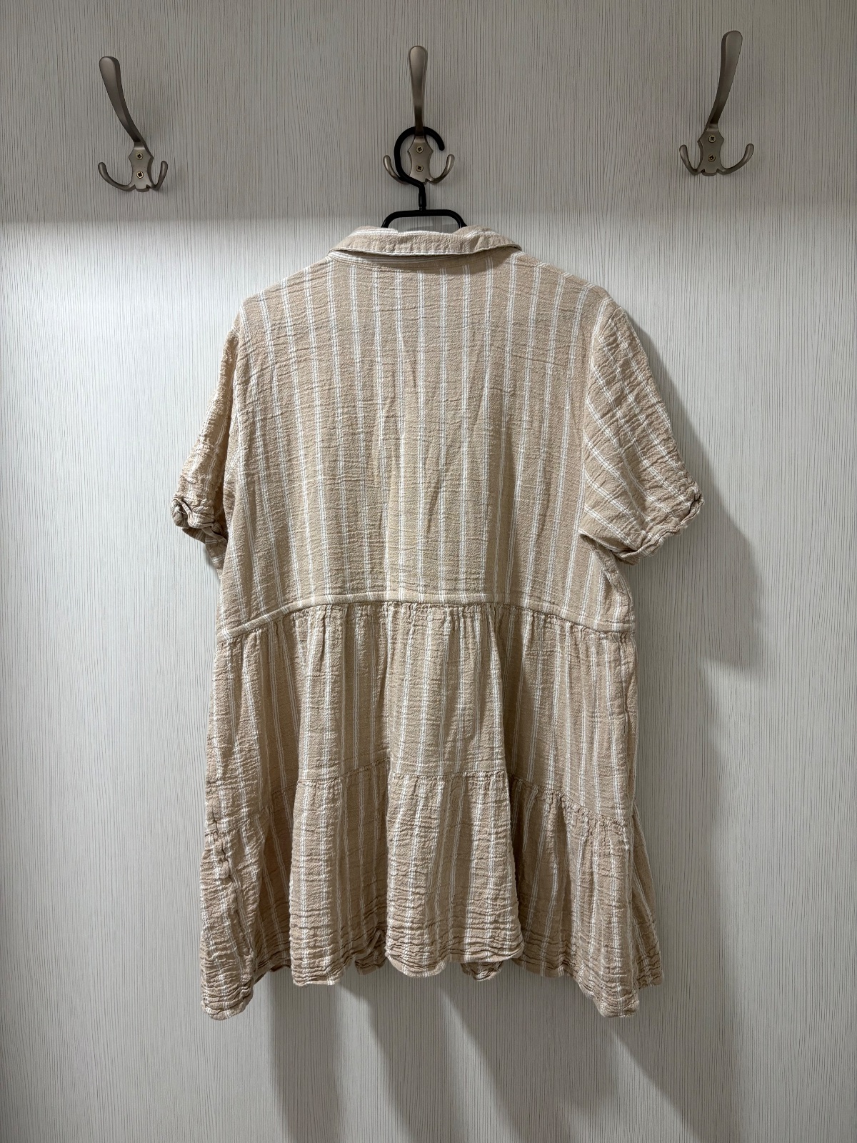 Dámske vzorované šaty s krátkym rukávom, tunika. Nie sú elastické. Materiál 65%bavlna,35%polyester. Veľkosť UNI (vhodná pre M,L,XL). Krajina pôvodu: ČĽR. ROZMERY: dĺžka:85cm, od pazuchy dĺžka dole...