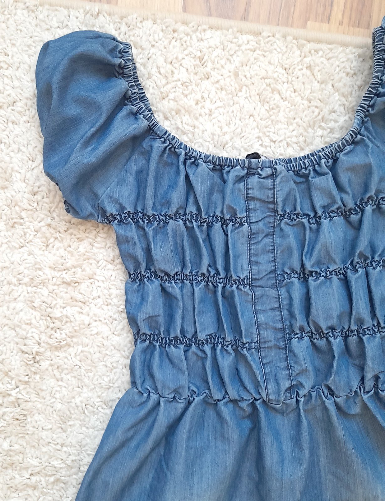 top stav, jemná riflovina, prispôsobia sa postave, dĺžka 70cm, šírka 28-44x2cm