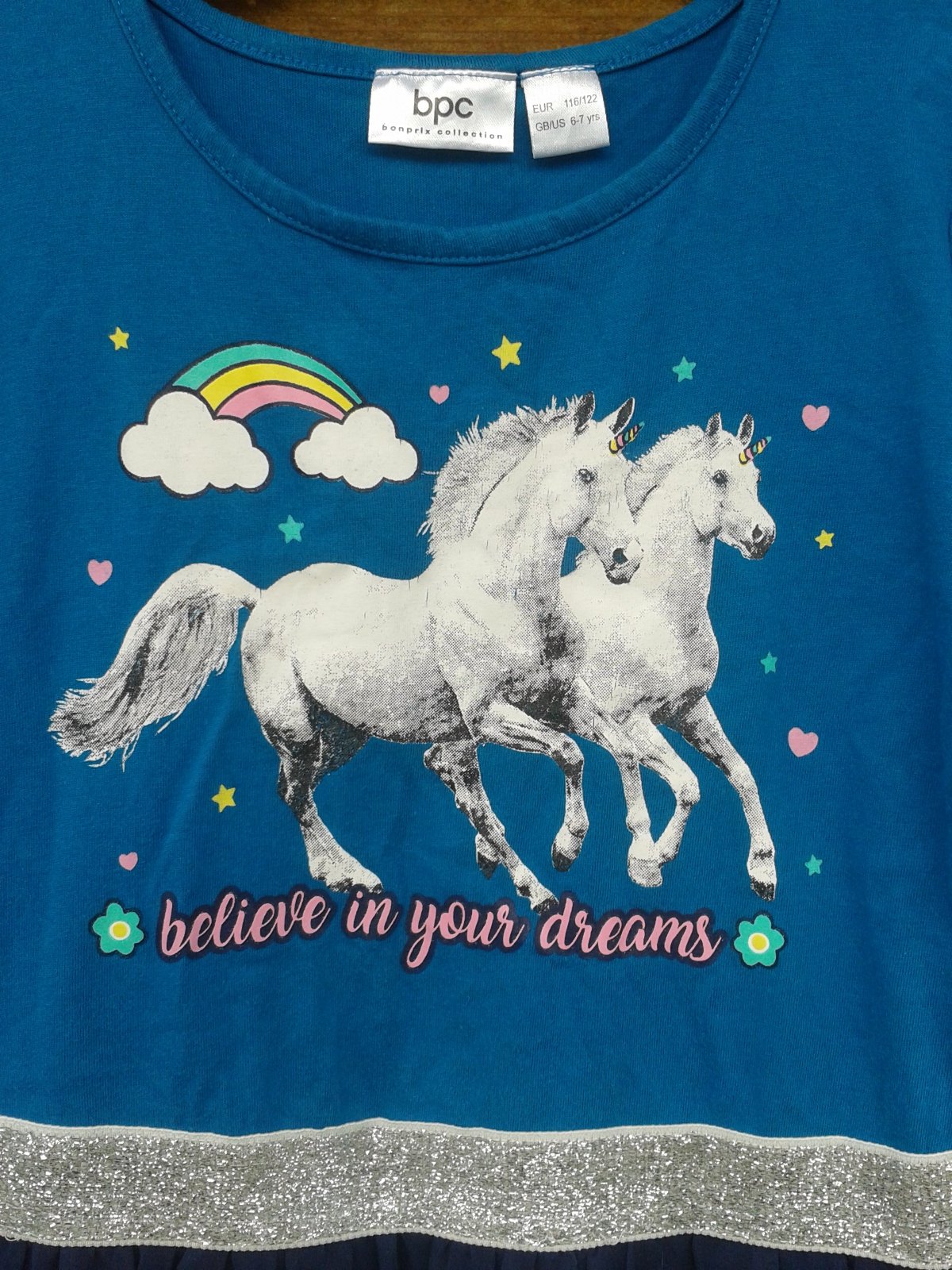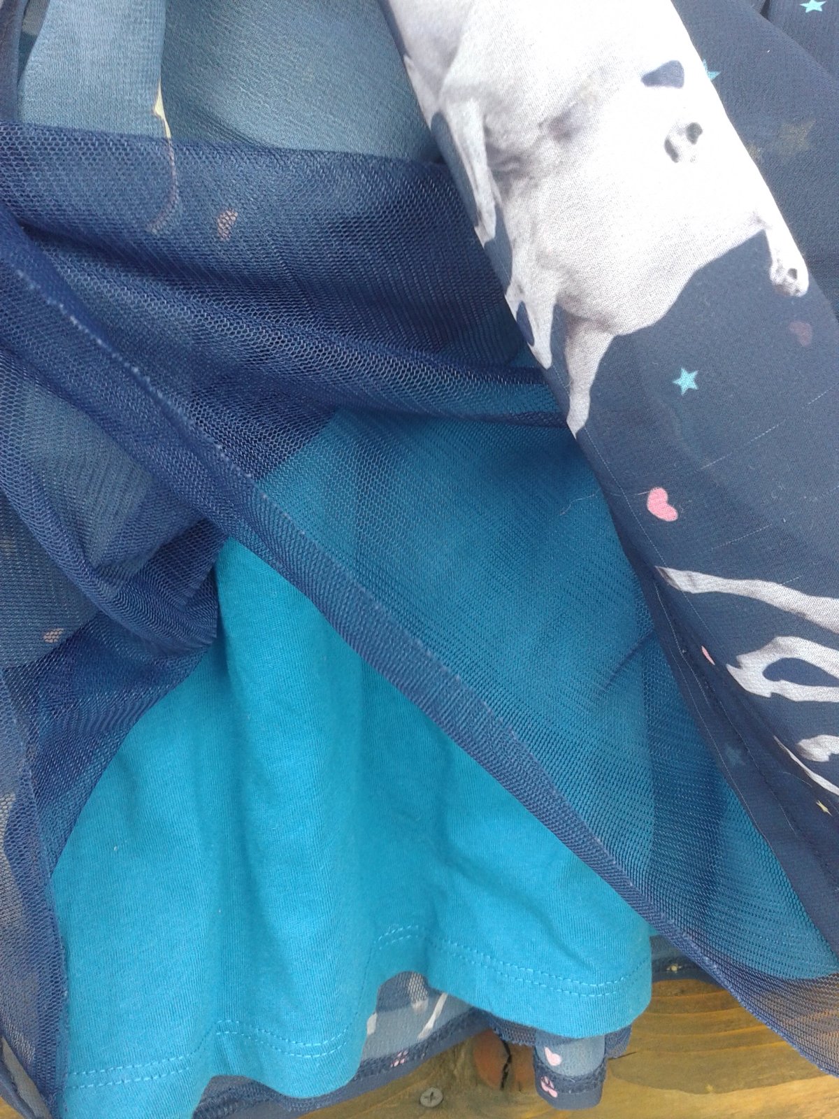Šaty zn.Bonprix, veľ.116/122..materiál bavlna, super stav až na minimálne zatrhnutú nitku na vrchnej vrstve sukne, nafotený detail-reálne nevidieť moc..zohľadnené v cene