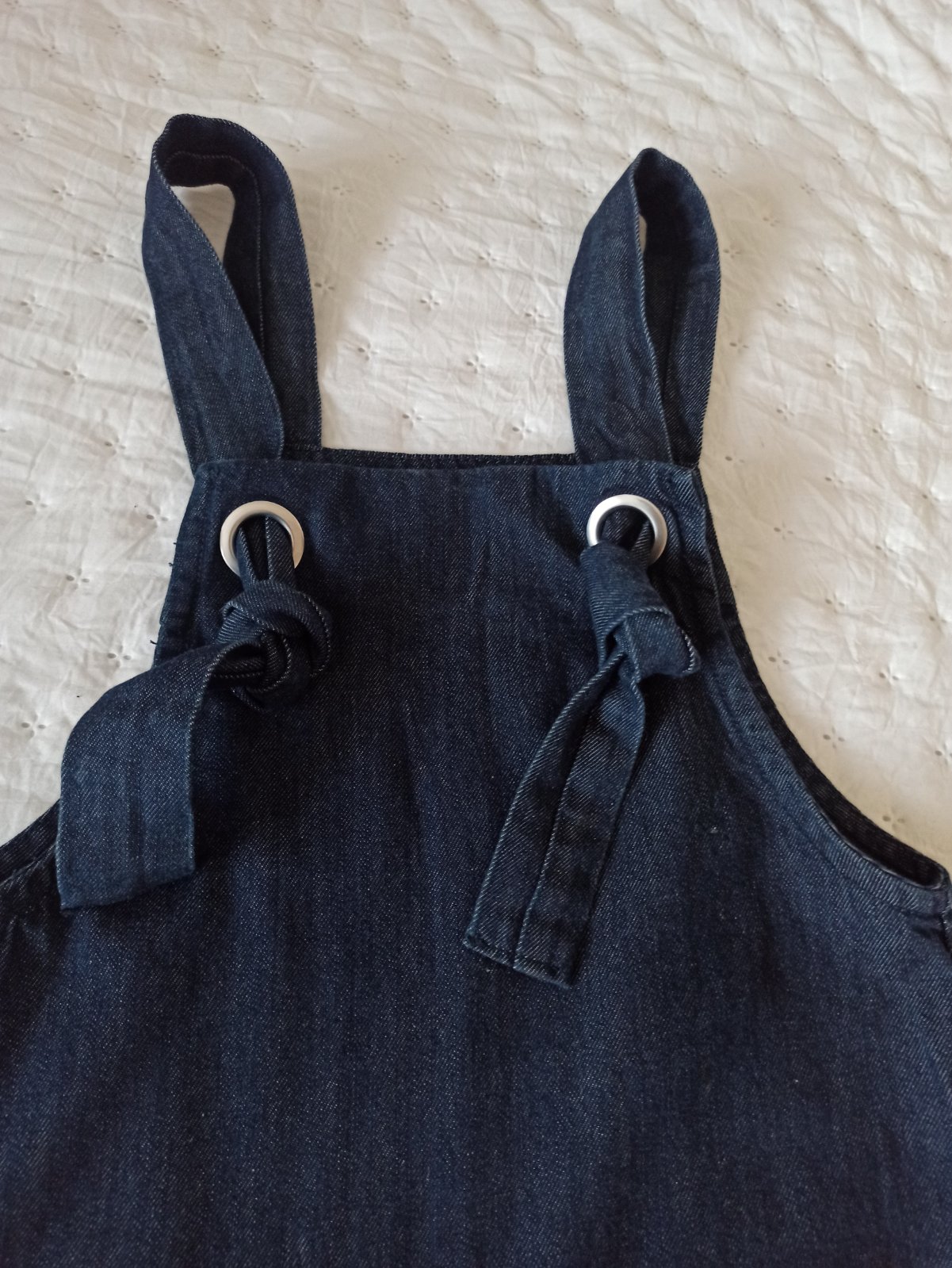 Jedinečné riflové šaty voľného strihu. Ramená sa nastavujú podľa potreby s uzlíkom.Málo nosené v top stave.