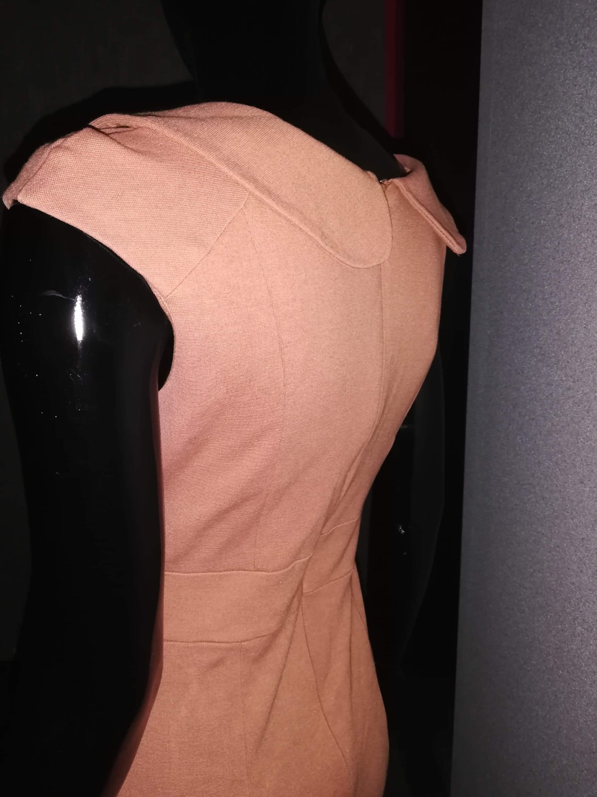 Výborný stav, pružné, karamelova hnedá, veľkosť UK12, sedia na 38,šírka pod pazuchami 44 cm, dĺžka 84 cm