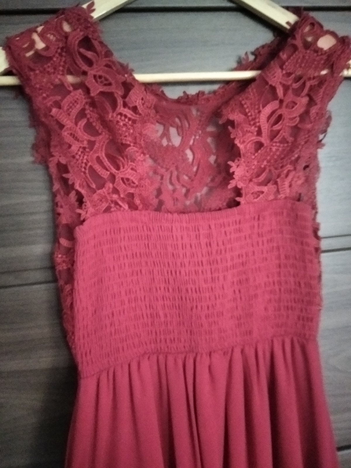 Šaty majú na chrbáte gumu, sú naťahovacie, nižšie pod prsiami voľne spustené. Je to veľkosť S.