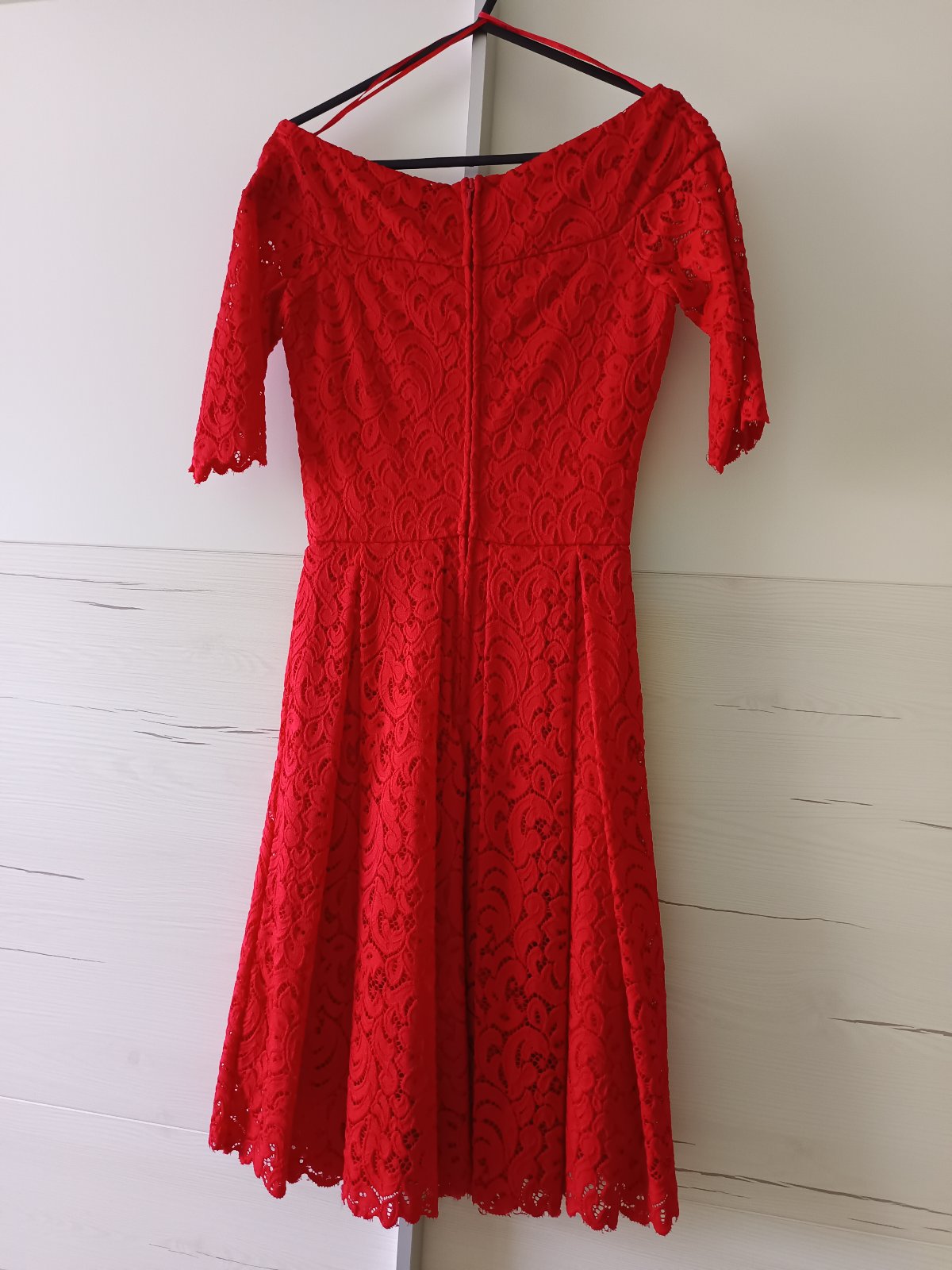Predám červené čipkované šaty s krátkym rukávom. Veľkosť je 34, značka Orsay. Zapínanie vzadu na zips. Šaty majú aj spodničku.