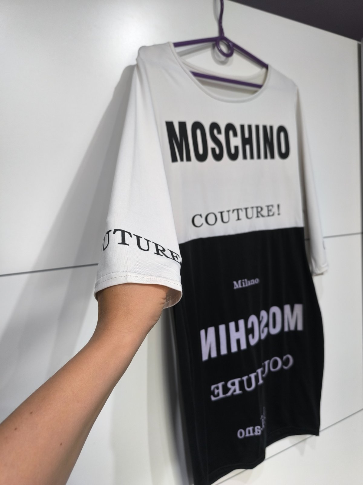 luxusne minisaty, pre vyssiu zienku tunika Moschino swim, oblecene 2-3 krat top stav, az na jeden fliacik pri noseni nevidiet ale uvadzam, vid. posl. foto zohladnene v cene velkost je Sko ale aj XS...