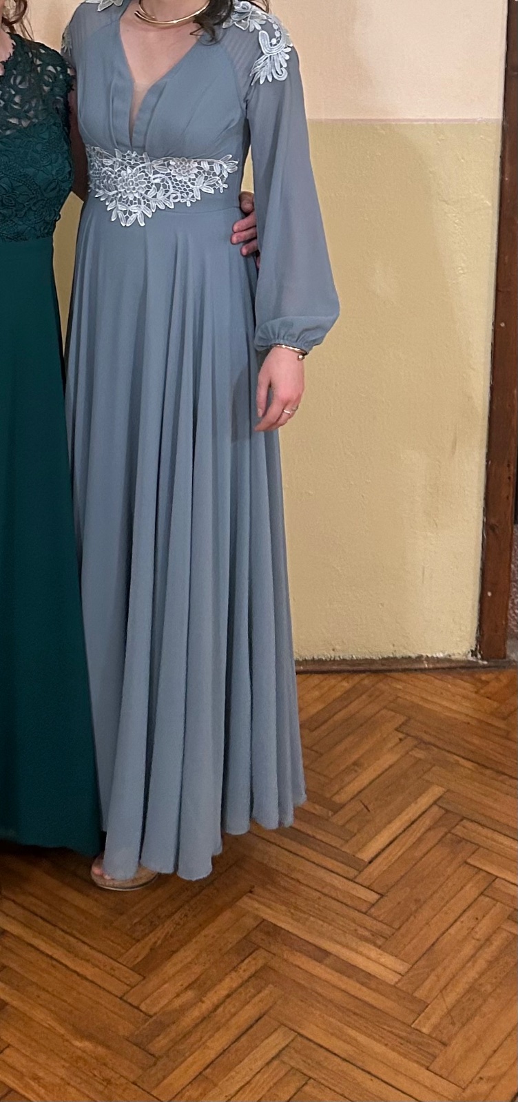 Krásne spoločenské šaty s ľahkými rukávmi.