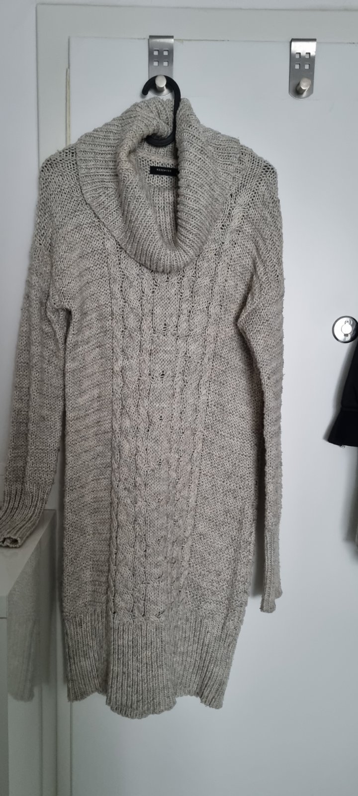 Predám dámske pletené šaty veľkosti S. Málo nosené. Dĺžka je cca po kolená. Šaty majú padavý golier. Cena je bez poštovného, osobný odber možný.