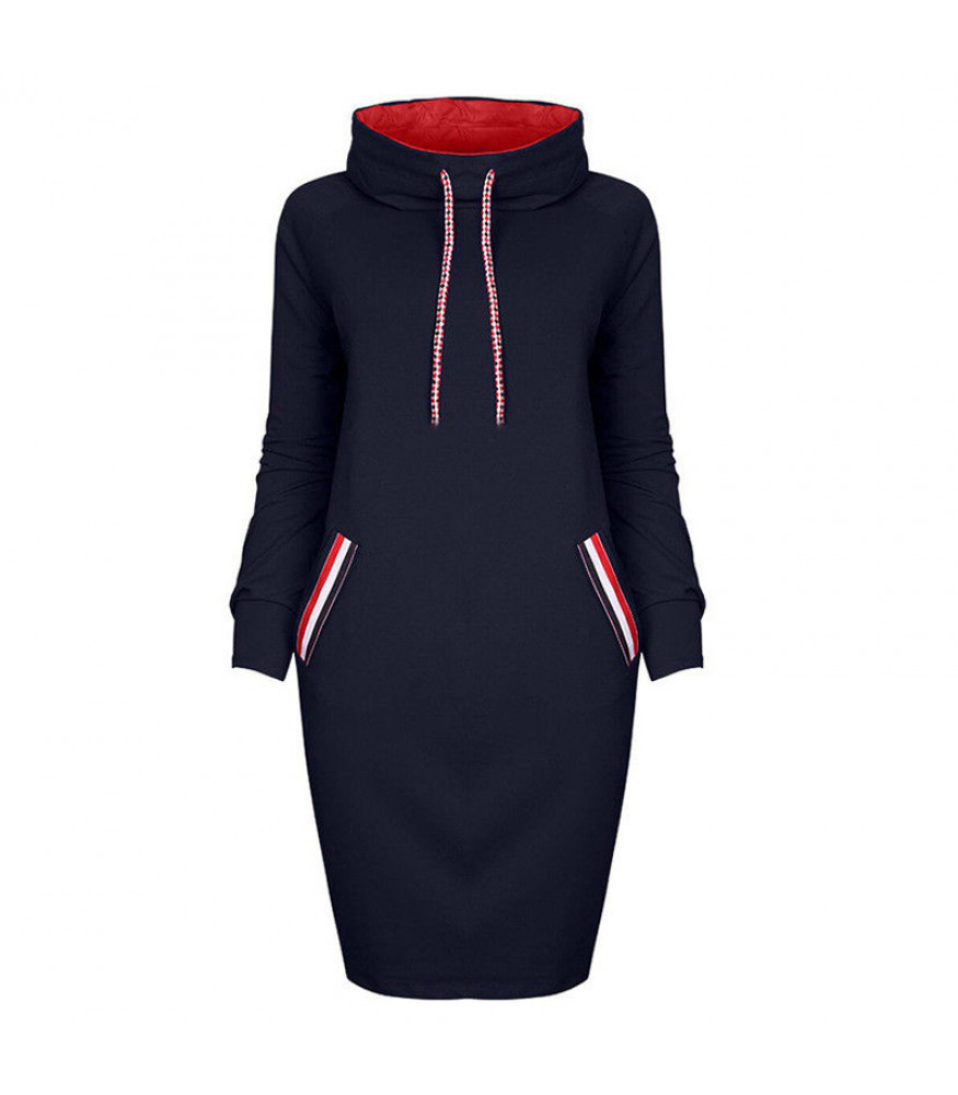 krasne mikinove saty s rolakovym stojacikom a vreckami. saty su velmi prijemneho lezerneho materialu. sedia nadherne, velkost M ,L ihned k odberu modre . 65% bavlna 35% polyester