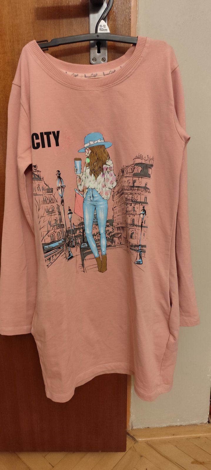 Predam peknu tuniku s vreckami a lesklymi flitrami. Povedala by som, ze vhodne od 128-152, pretoze da sa to pouzit ako satky, neskor ako tunika pre vacsie dievcatko. Na jednom rukavku je fliacik. Je to nafotene.