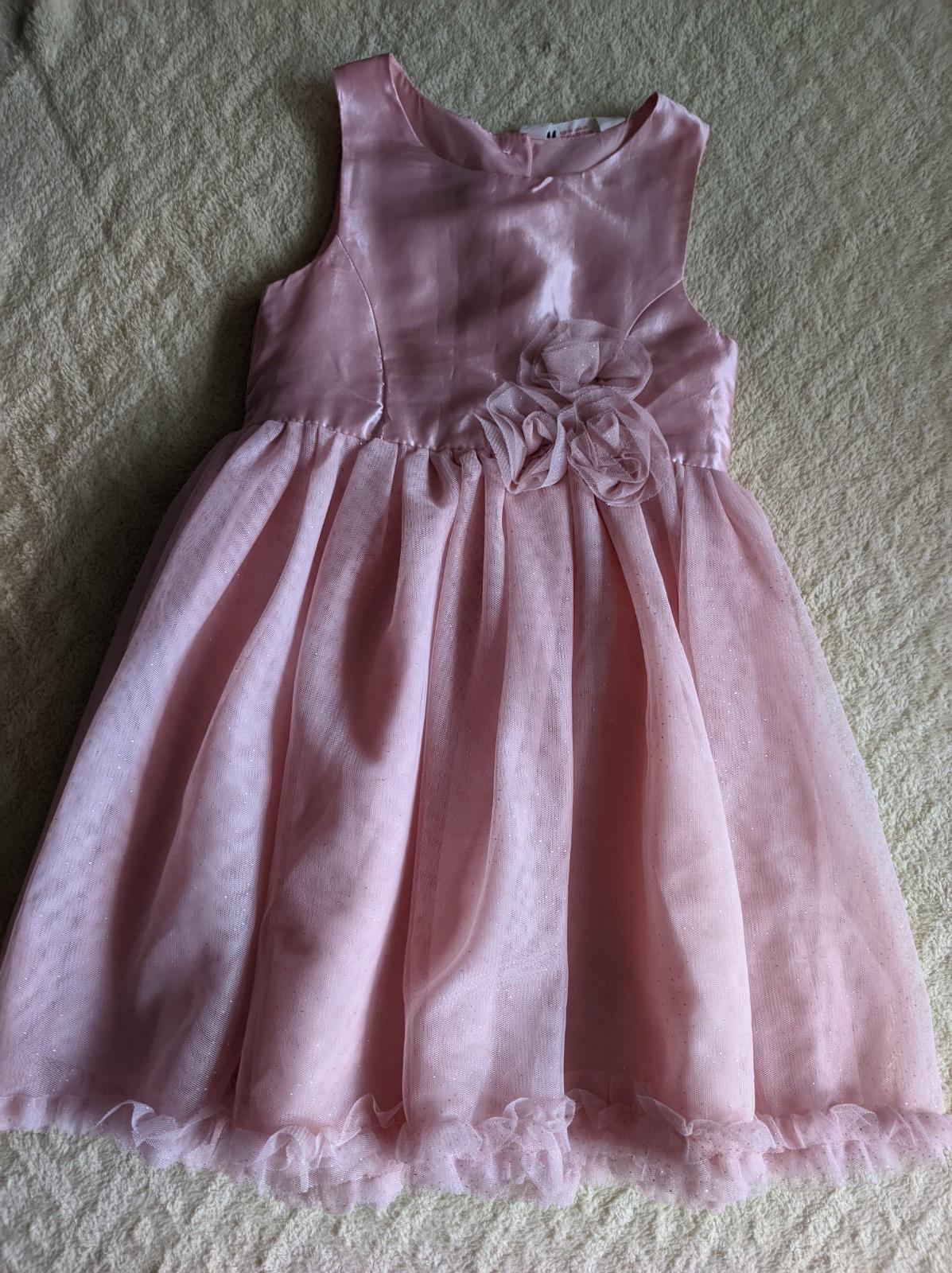 IHNEĎ K ODBERU! Vhodné na vek 4 - 5 rokov, veľkosť 110, celková dĺžka cca 63 cm, zapínanie vzadu na zips, značka H&M. Krásne nadýchané jemné šiatky z tylu sú vhodné pre akúkoľvek spoločenskú udalos...