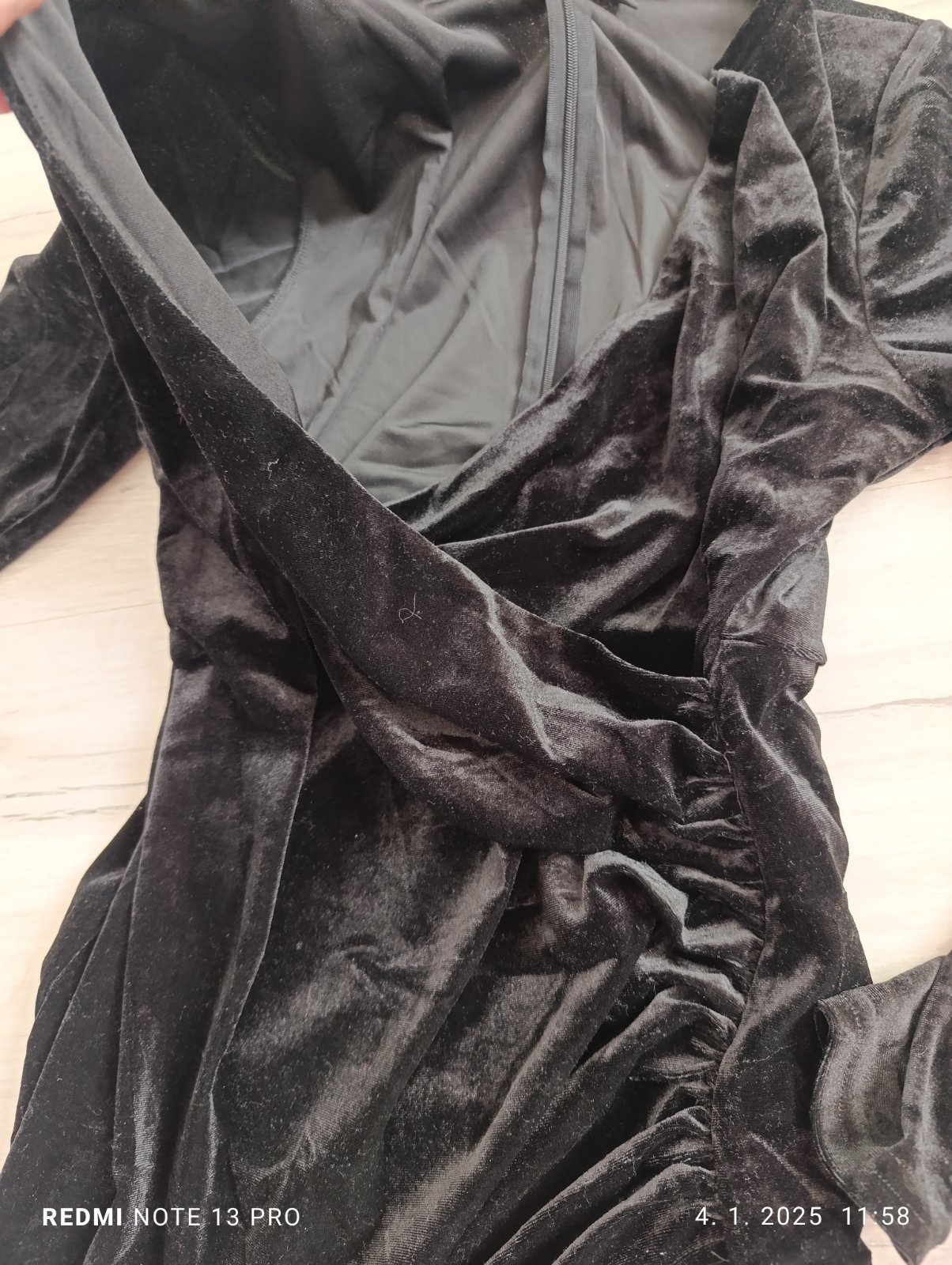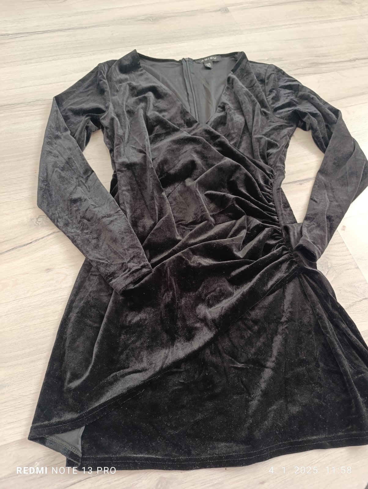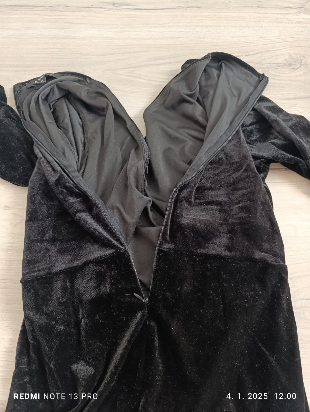 Sexi šaty iba 1x oblečené, ako nové. Vpredu sú prekladané a nazberkané tak dobre zakryjú prípadne bruško 🙂 vzadu na chrbte majú zips, sú elastické, uvedená veľkosť 42, ale sedia na M-L. Pri výmene 8€