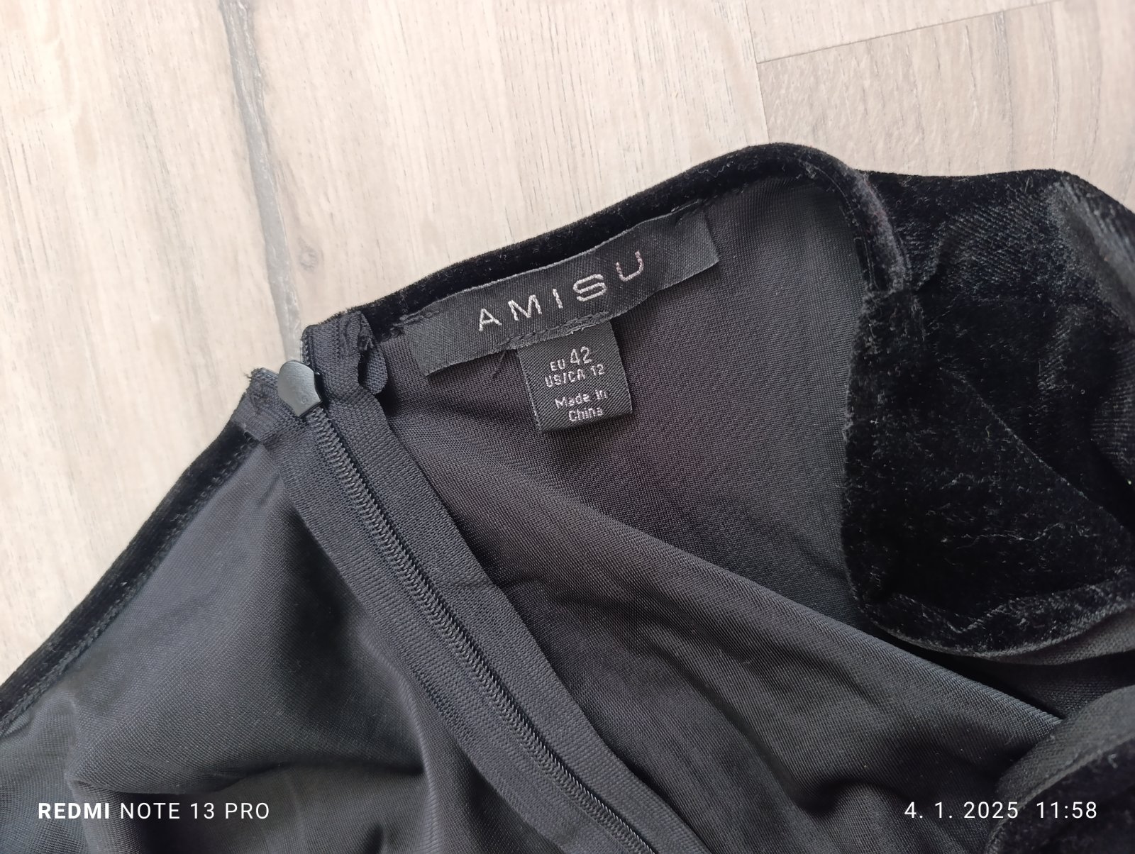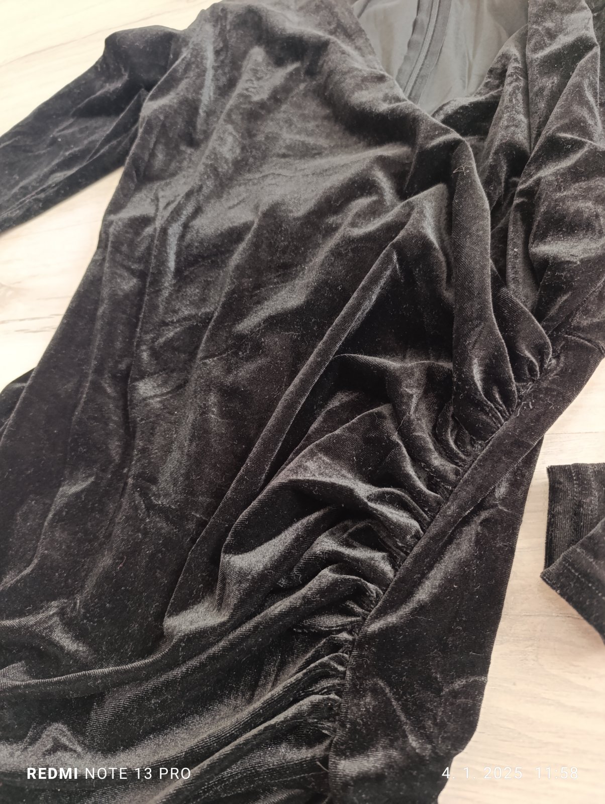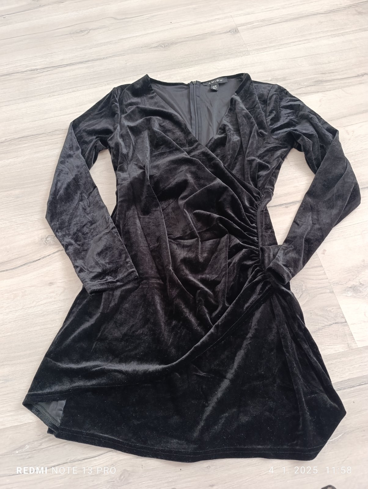Sexi šaty iba 1x oblečené, ako nové. Vpredu sú prekladané a nazberkané tak dobre zakryjú prípadne bruško 🙂 vzadu na chrbte majú zips, sú elastické, uvedená veľkosť 42, ale sedia na M-L. Pri výmene 8€