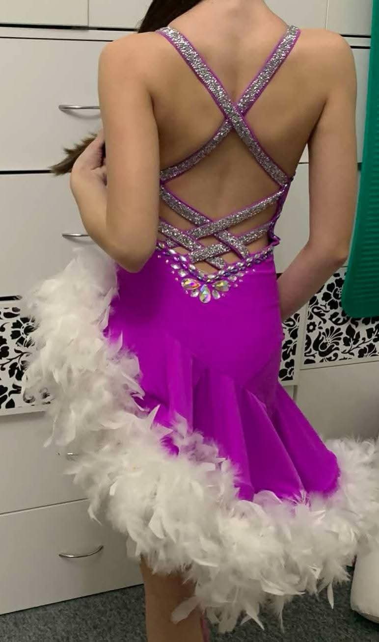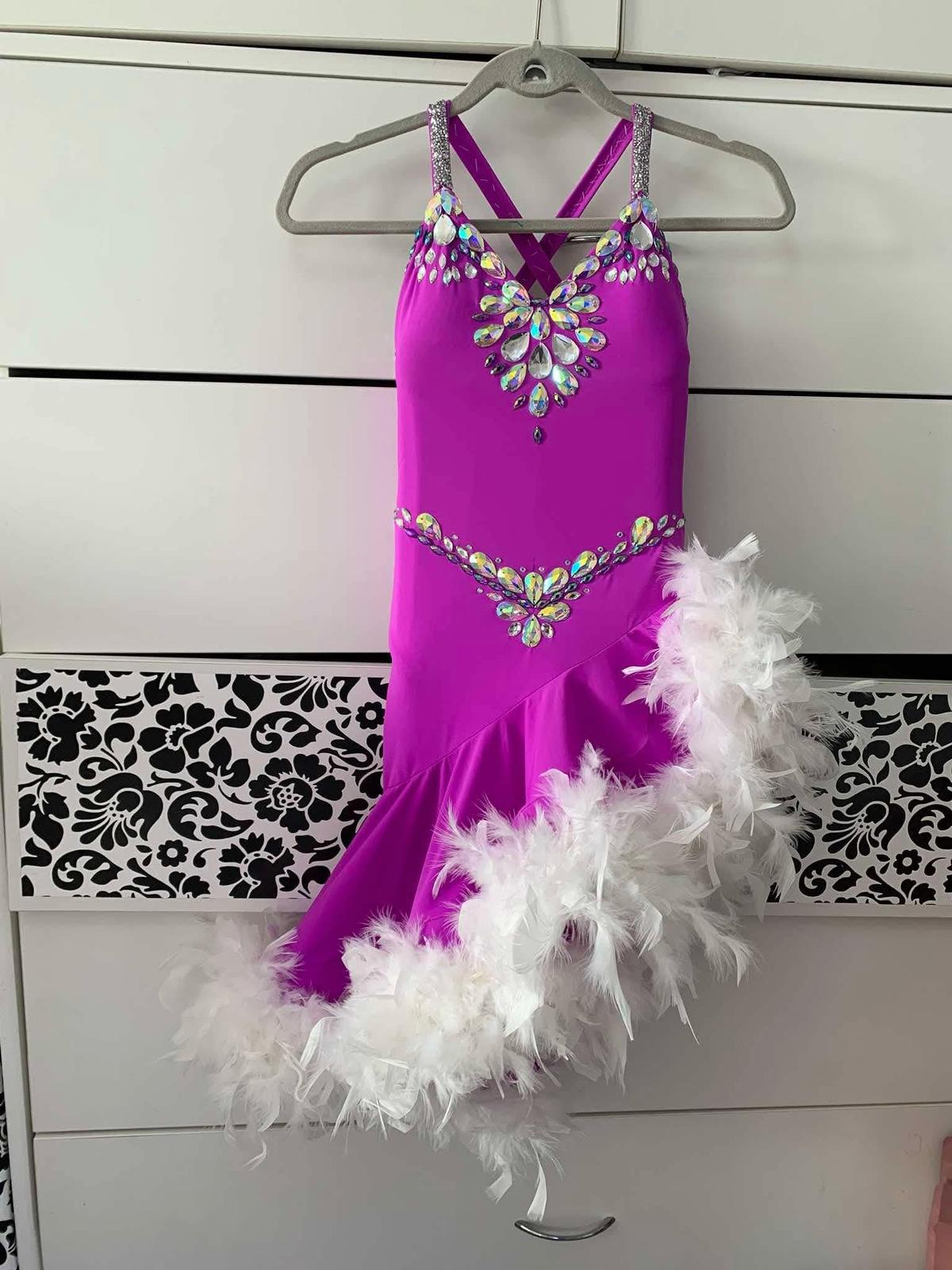 nádherné saty od junior 2 vyssie, vhodné pre stihlu tanecnicu, veľkosť xxs 158-165 cena 550€ prvá majitelka, použite parkrat. Su nadherne, vsite body-nohavicky, veľmi pekne a efektné na parkete, osobny odber Slovensko - Kosice alebo poslem aj postou - packetou po zaslani zalohy, zvysok dobierka