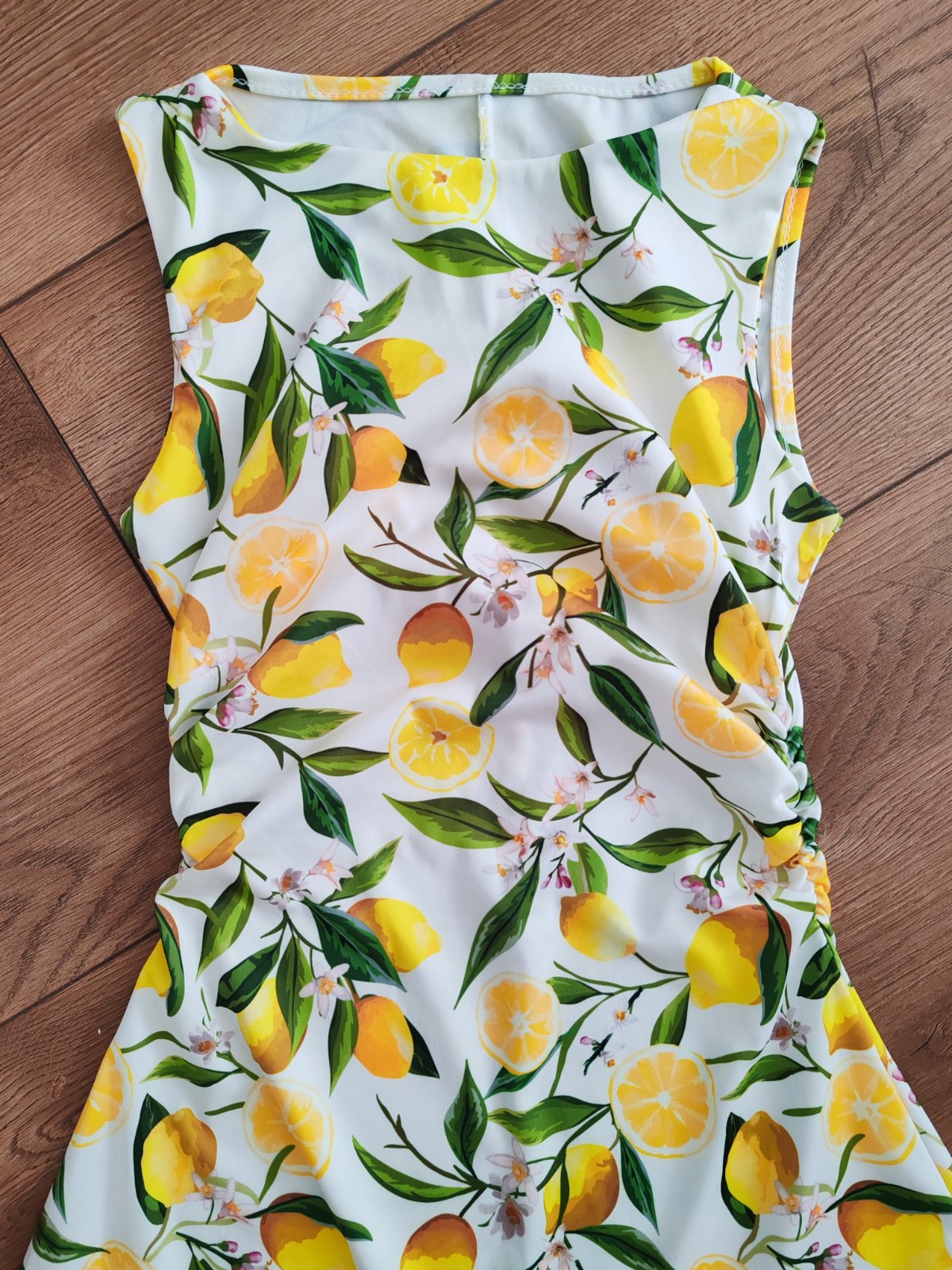 Predám krásne letné minišaty s citrónovým vzorom, raz oblečené na dovolenke. Veľkosť UNI - sedia na XS, S a M. Kupované cez e-shop za 22 EUR. Top stav.