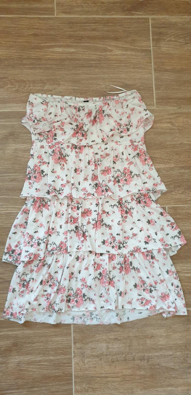 Dámske vzorované šaty. Veľkosť M. Materiál 95% bavlna a 5% elastan. Sú elastické, pri výške 175cm dlhé po stehná. Sú v skvelom stave bez poškodenia. Rozmery: Dĺžka 80cm Šírka prsia 40cm (obvod 8...
