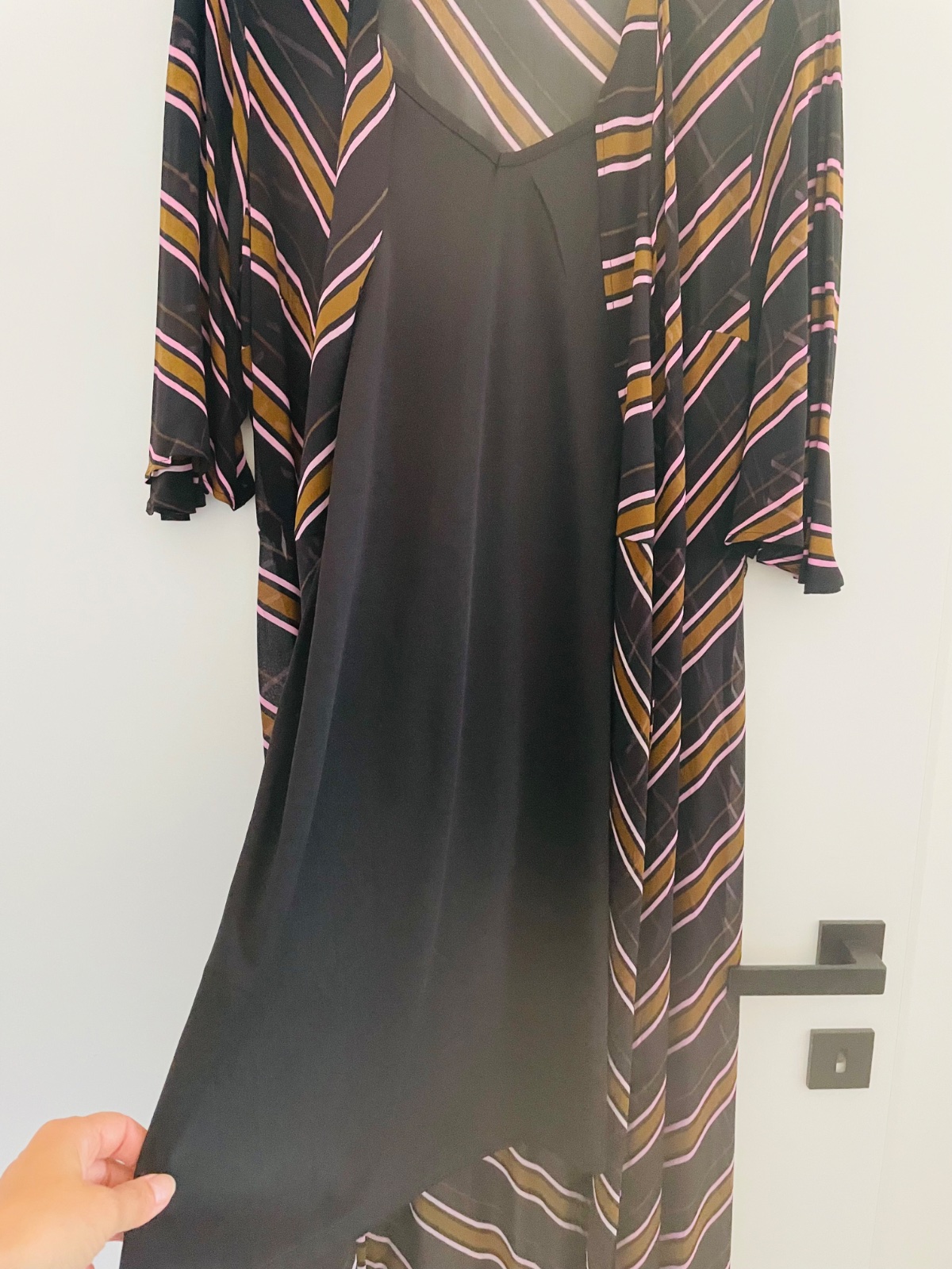 Ľahučké zavinovacie šaty so spodničkou, veľmi príjemné, dlhé so zaujímavým šikmým prúžkom - zoštíhlia postavu