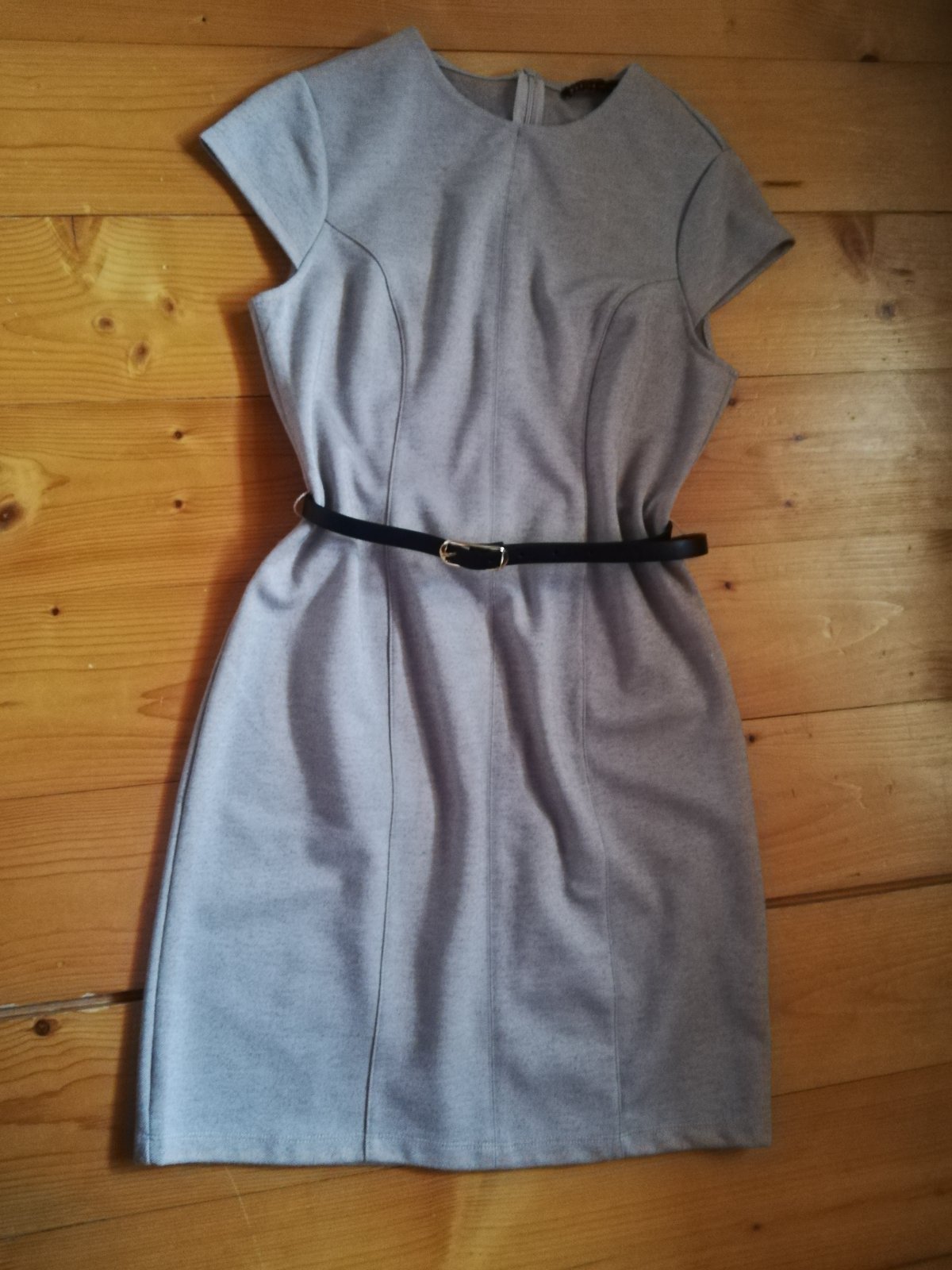 Pekne sive šaty rovného strihu. Material skor taky trochu teply, pevný. Nie sú elastické takze sedia len na veľkosť S. Mne uz bohuzial malé 😐 cena 5€ plus poštovné