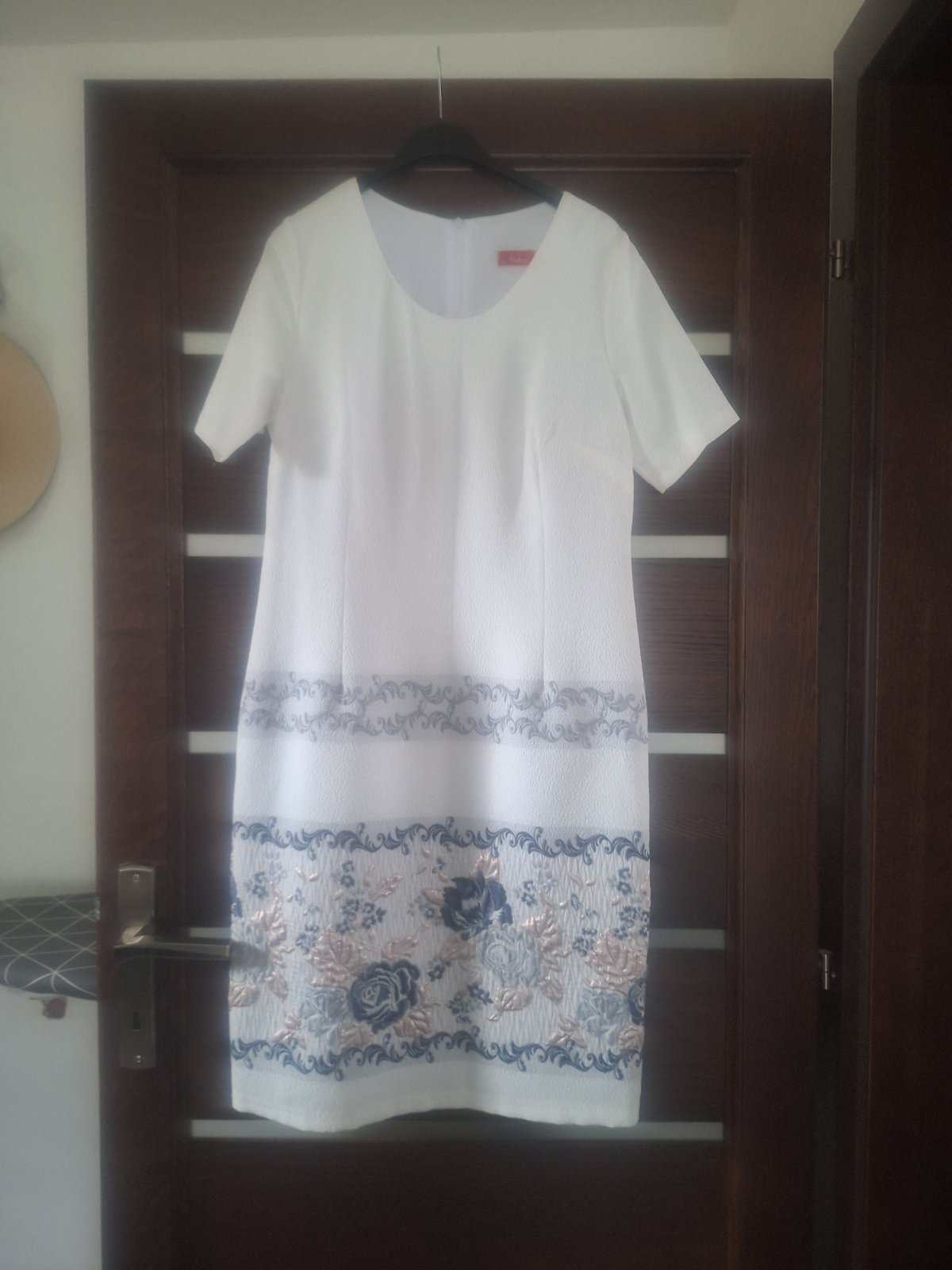 Krasne biele saty s potlacou ruzí na prilezitost (oslava, svadba). Posite. Bez poskodení. V pripade zaujmu premeriam.