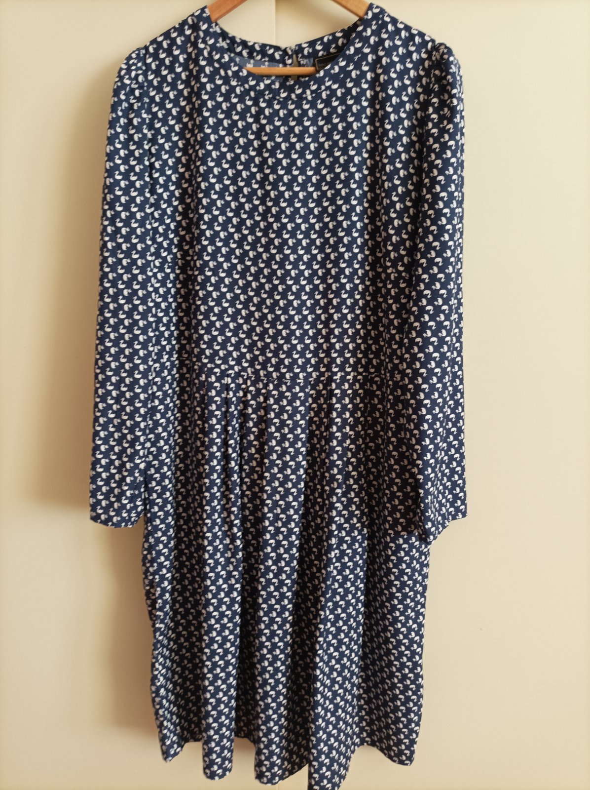 Ľahké letné šaty,nekrčivé. Majú nenápadne vrecká. Veľmi príjemné, asi 2x oblečené. Nesedí mi taký strih.