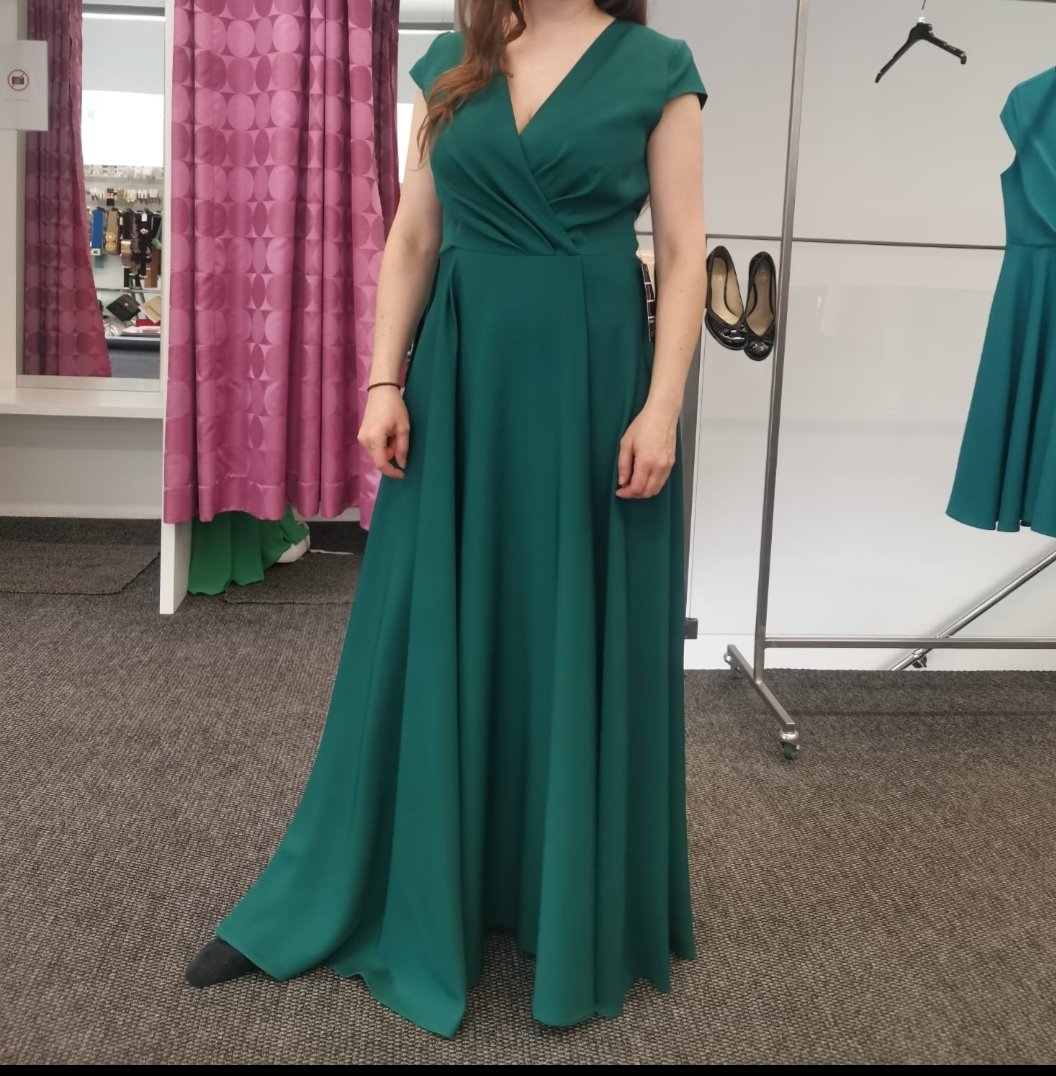 Raz oblečené na svadbu,vhodne pre väčšie poprsie,meriam 171cm a boli mi po zem.