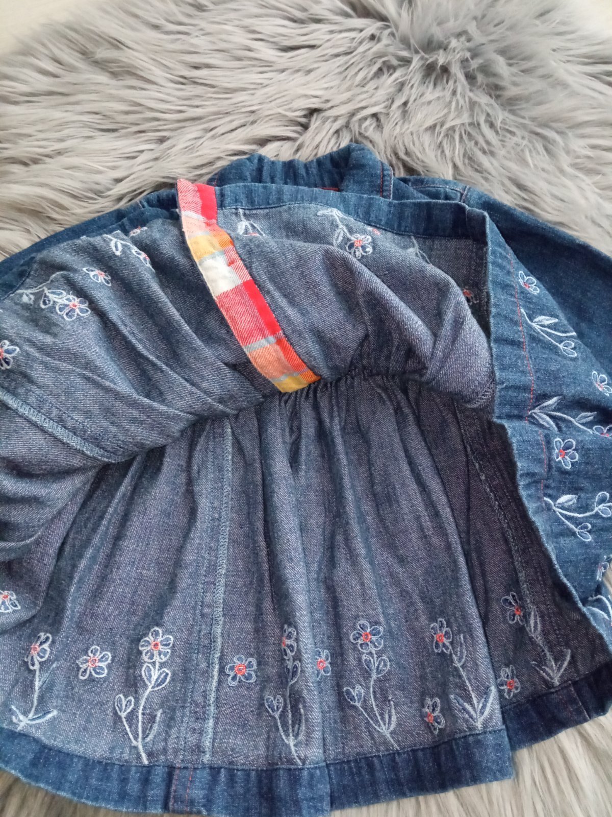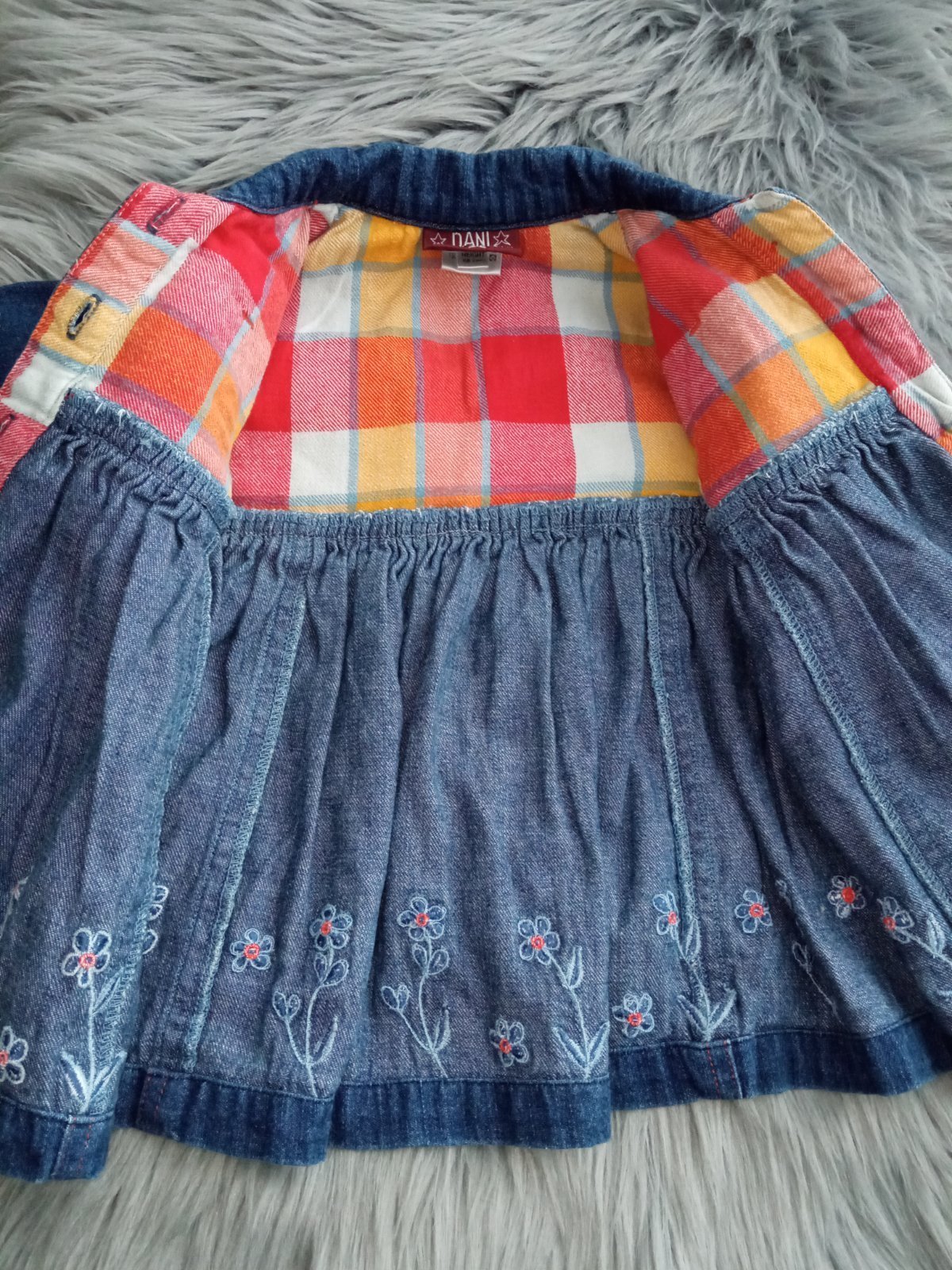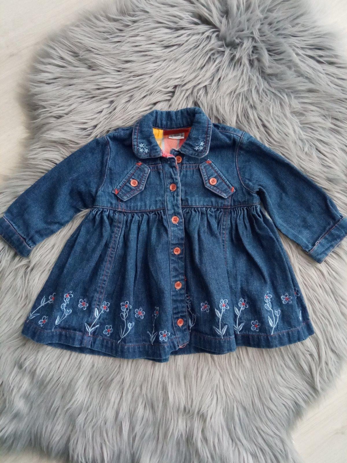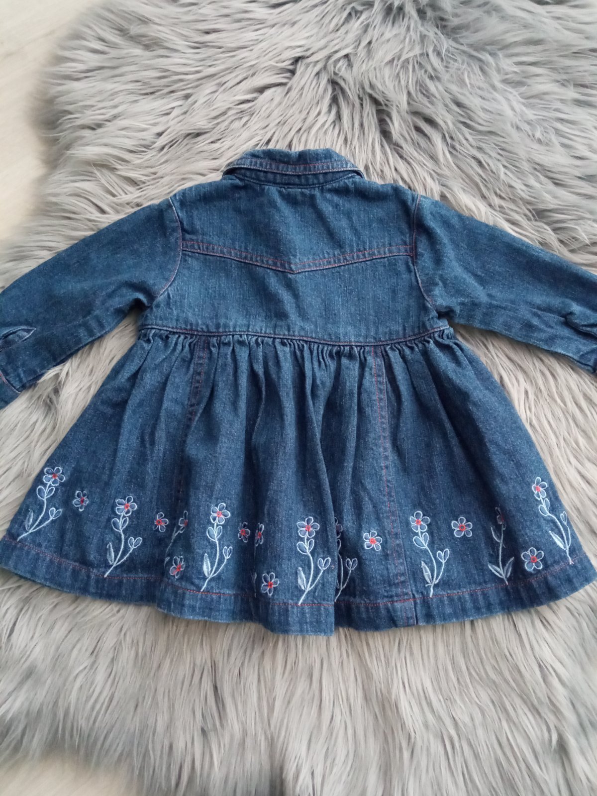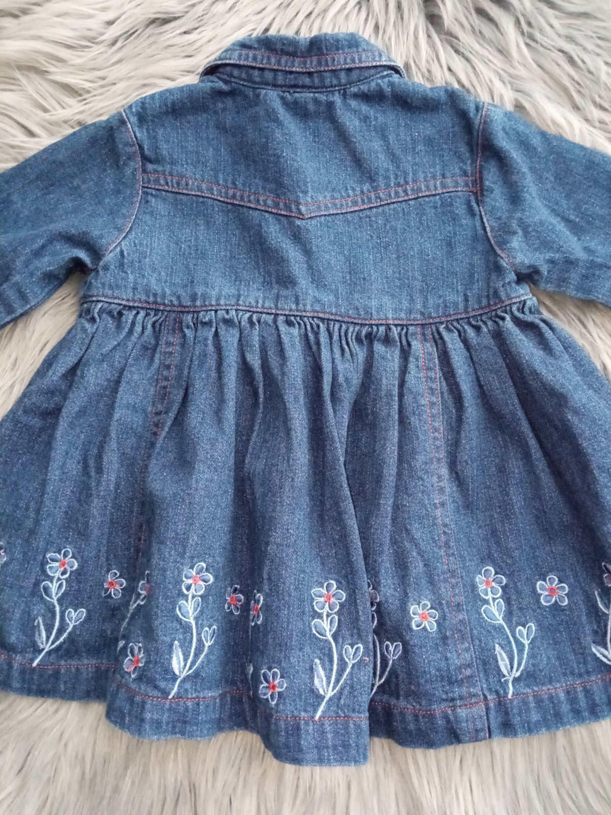 Dievčenské rifľové šaty s kvetmi, zapínanie na gombíky, nie sú elastické,materiál:100%bavlna.