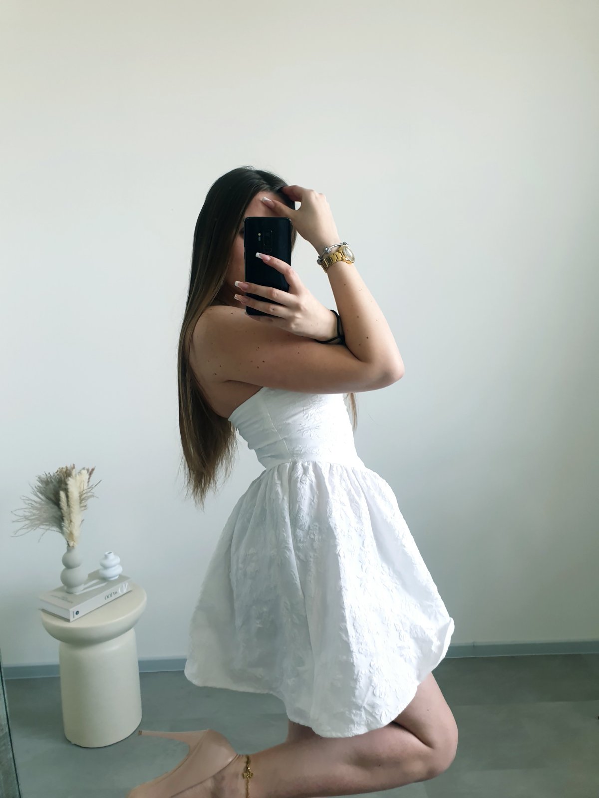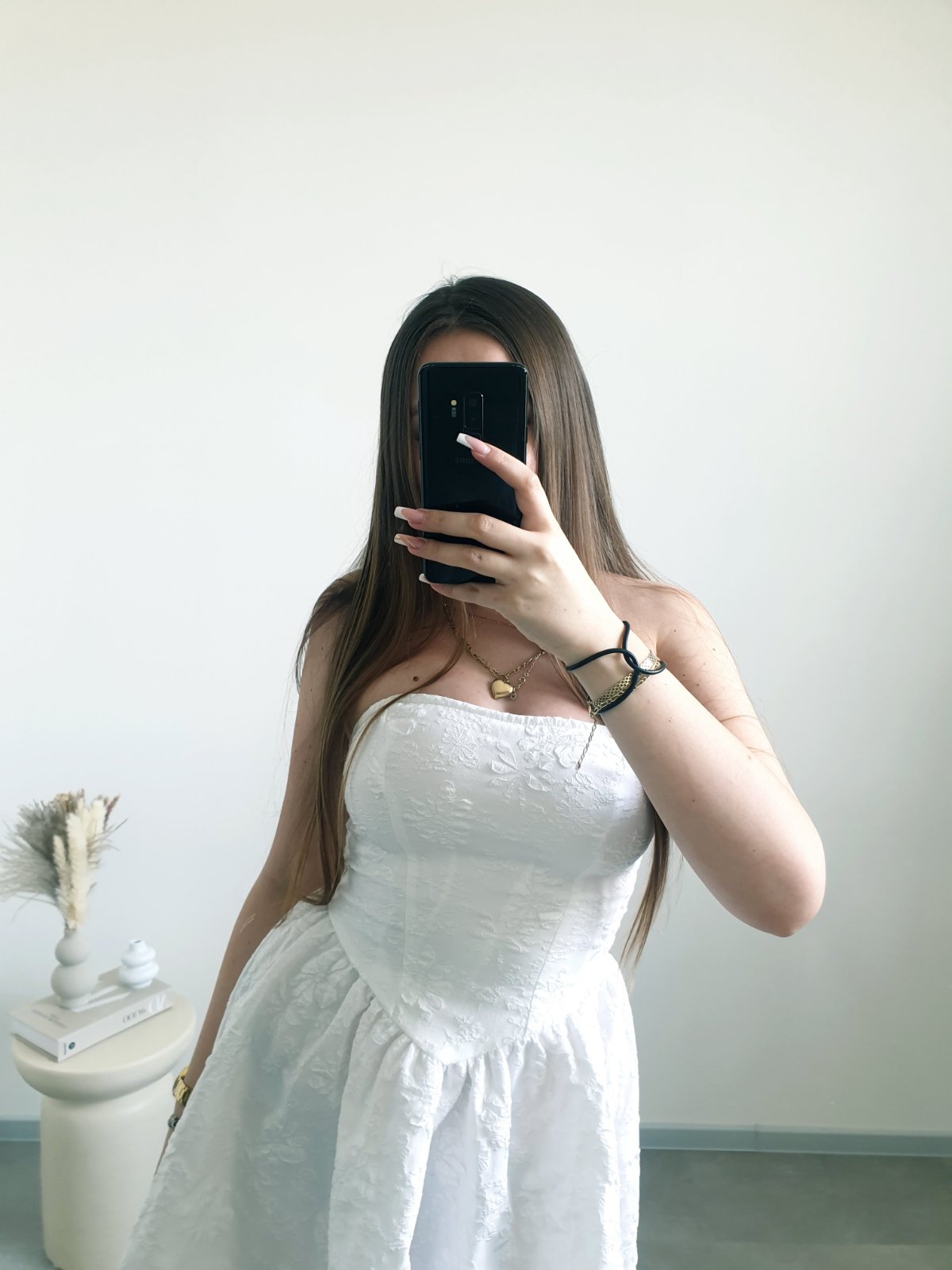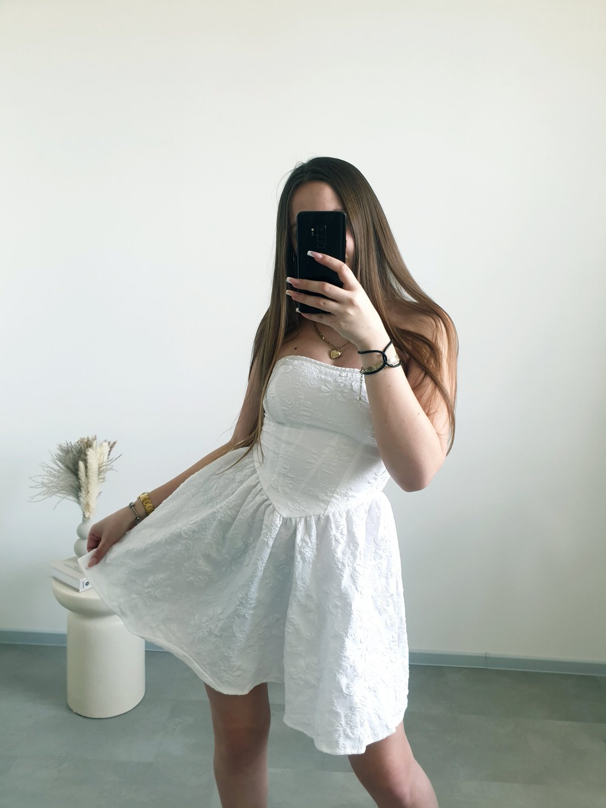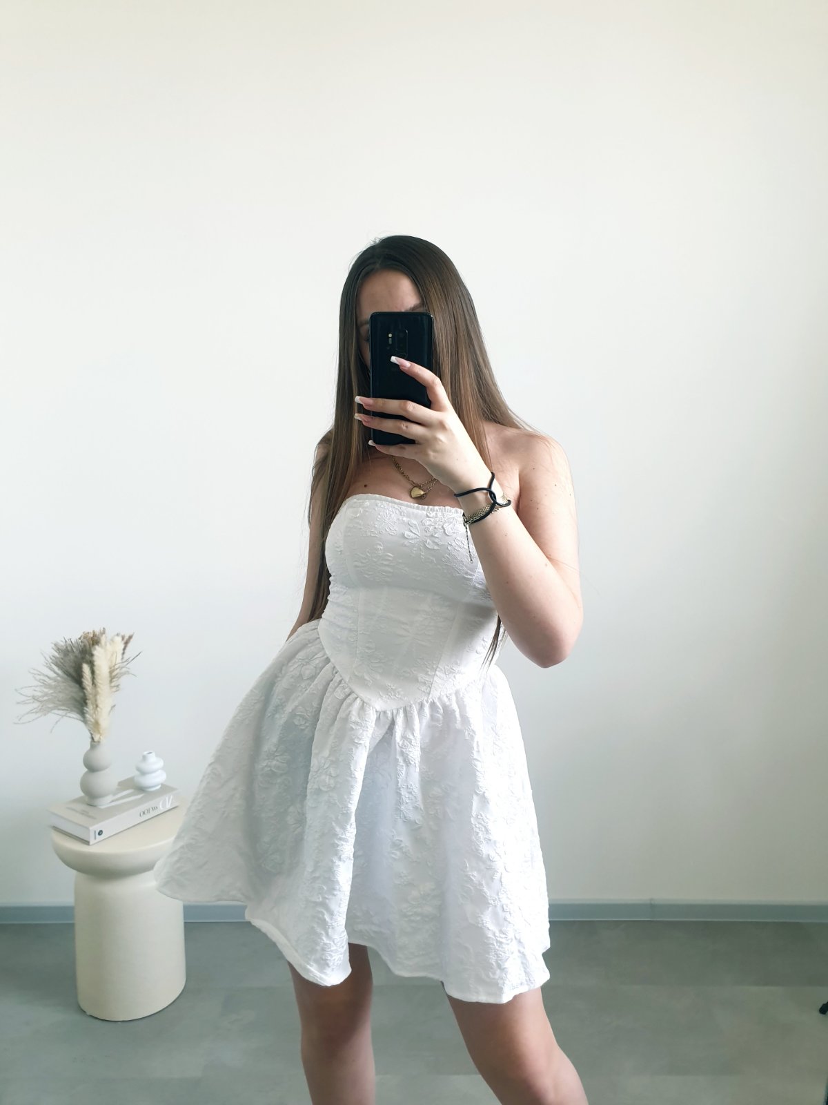Krásne biele šaty, použité raz ako popolnočné šaty na svadbe.