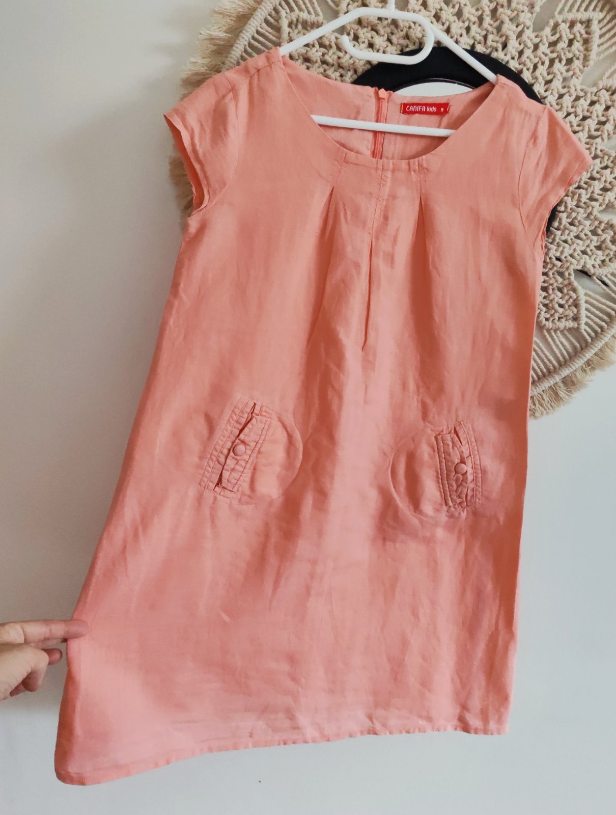 Krasne bavlnene satky. V pase guma a bočné vrecka, padnuté rukavy. Farba lososovo staroruzova. Prijemne. Len raz vzaté. Top stav. Dĺžka 74cm.