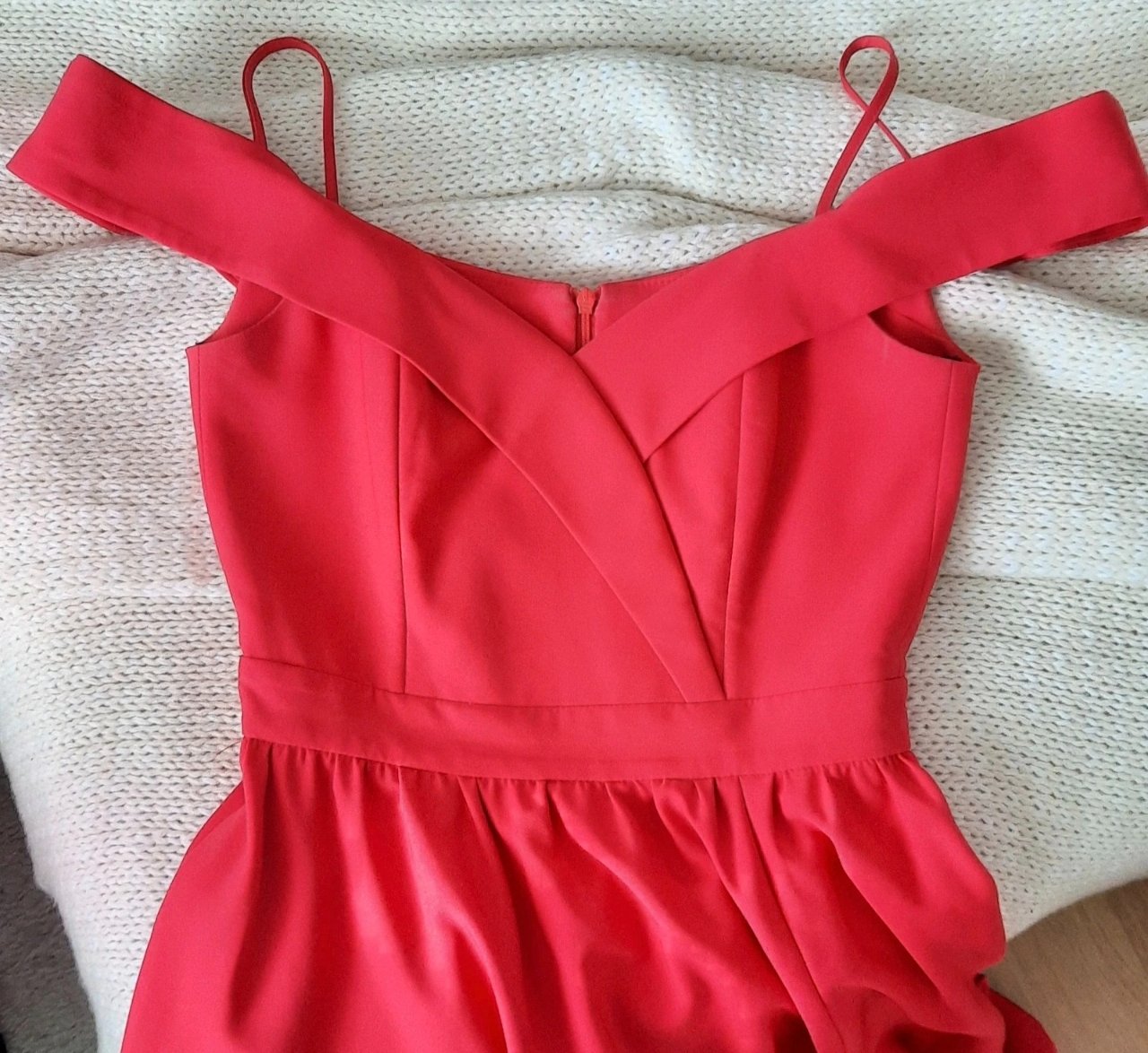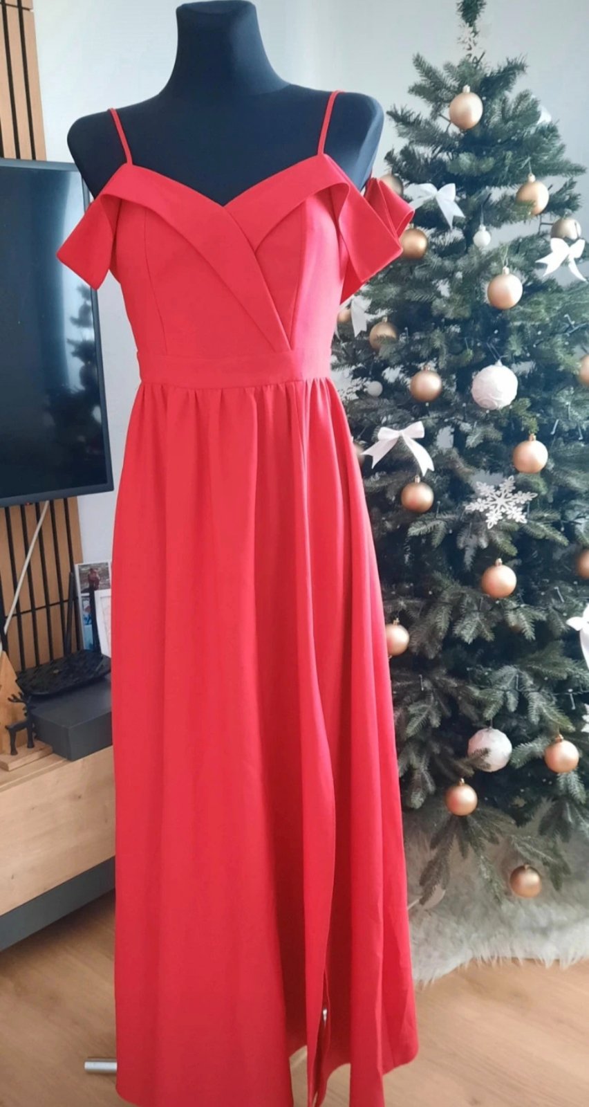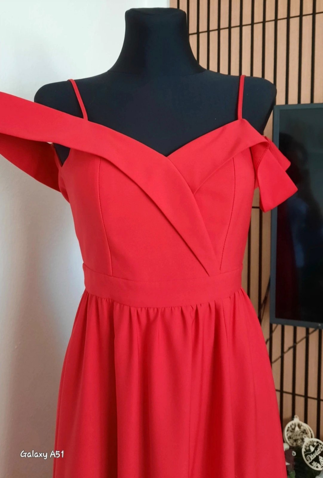 Sýto červené spoločenské šaty, farba zodpovedá poslednej foto. Využite na 1 fotenie. Veľkosť sedi