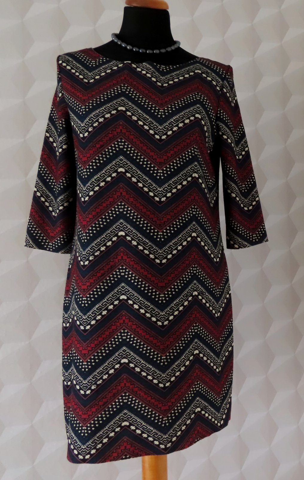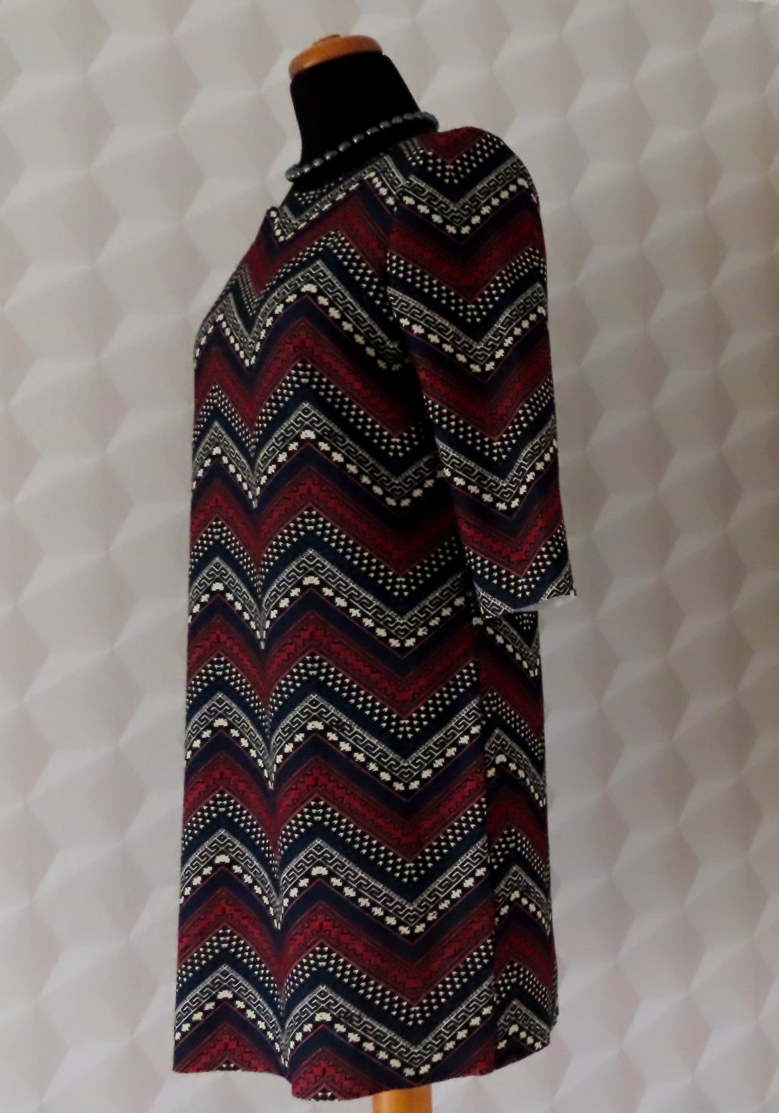 Dámske šaty Amisu, veľ. S, rozmery: dlžka 85cm, pod pazuchami 2x47cm, rukáv je 3/4 dlžky - 42/27cm.