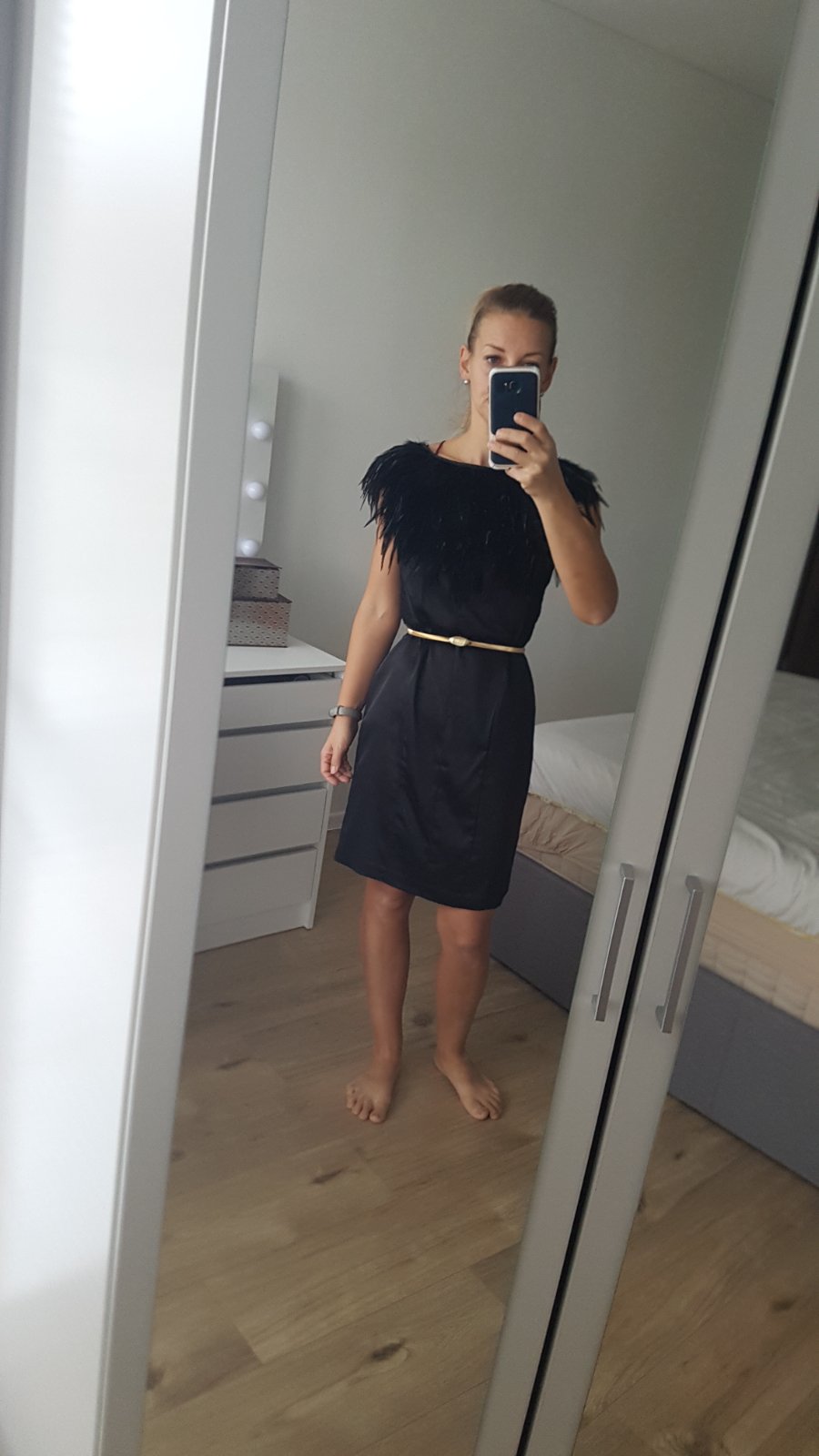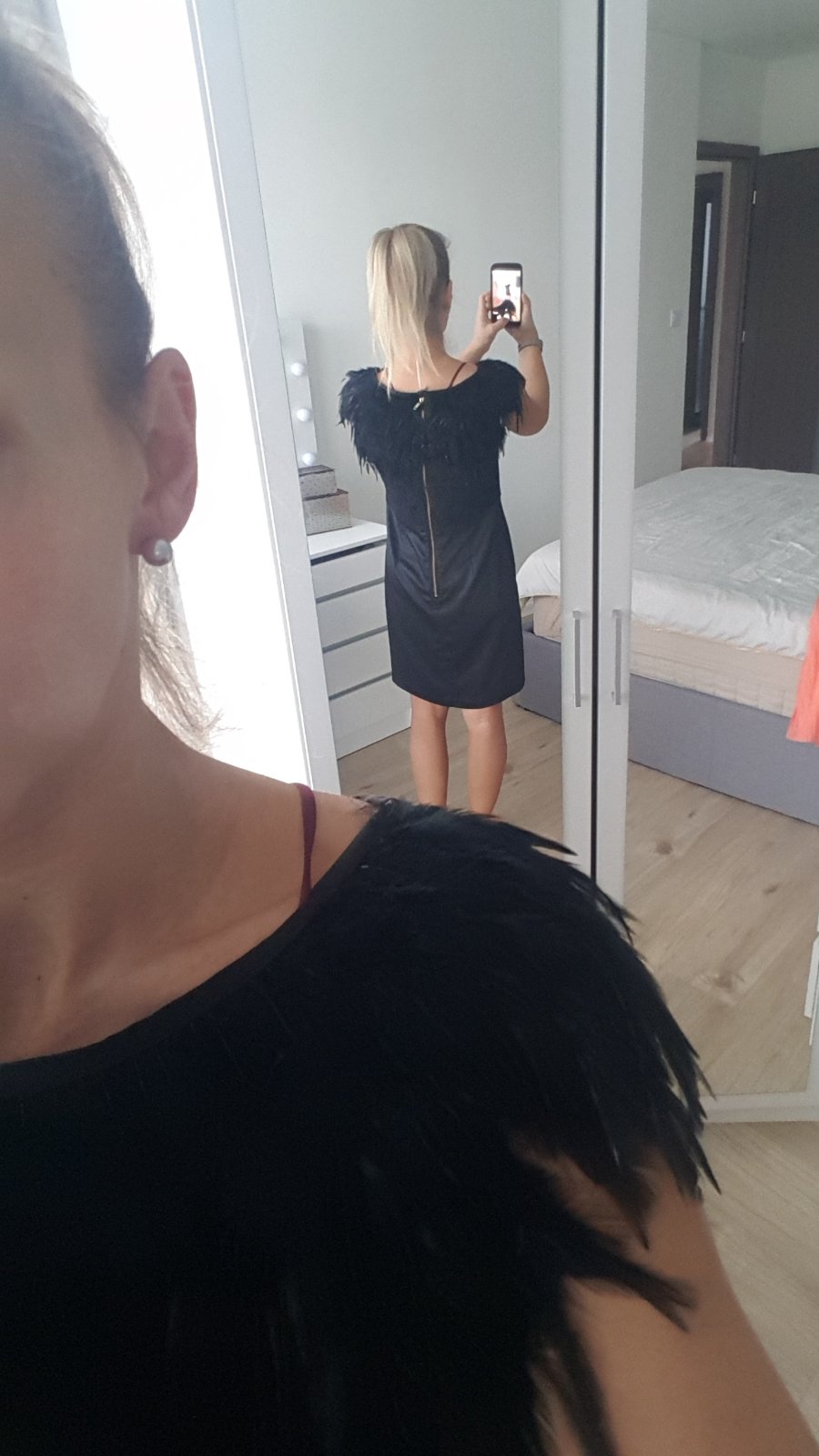 Next Signature šaty, veľkosť uk 10/Eur 38. Kupovane v uk, oblečené raz. Okolo krku je krásny detail z peria. €20