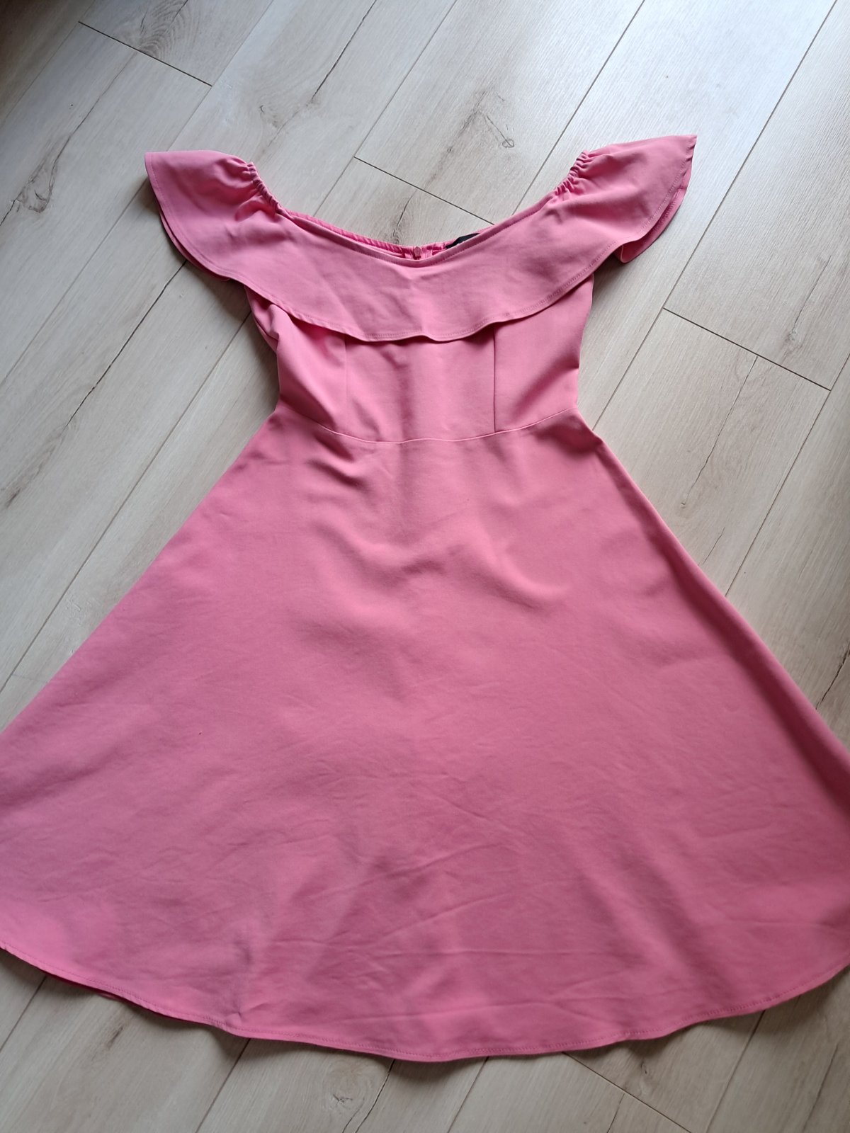 ruzove saty s riasenim na rukavoch vzadu zips dlzka 85cm 100% stav