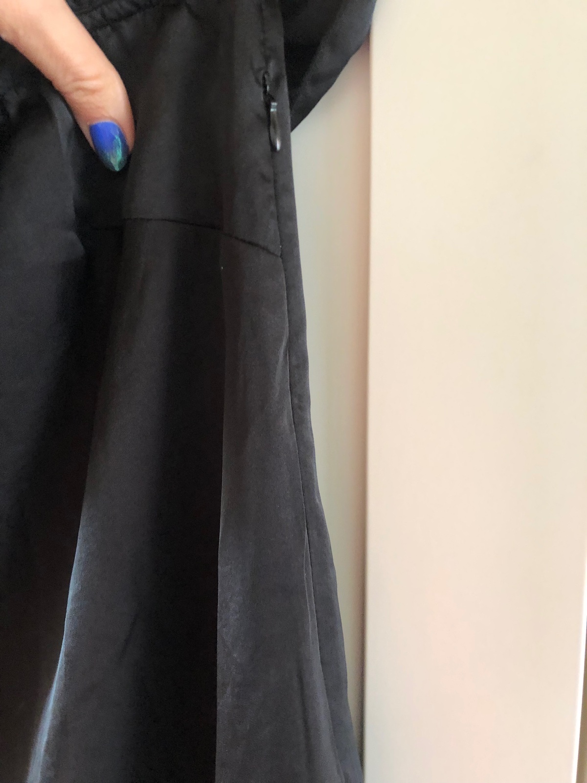 Nenosené, iba oprane, podšité, zapinanie na zips, pogumované v oblasti výstrahu, cd 94cm, v podpazuší 46cm, 14 + posta