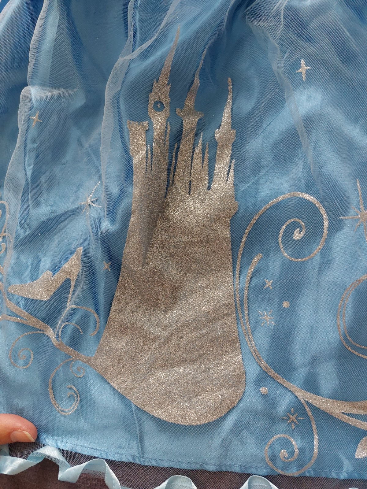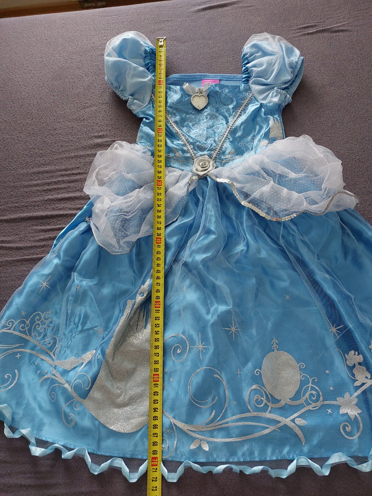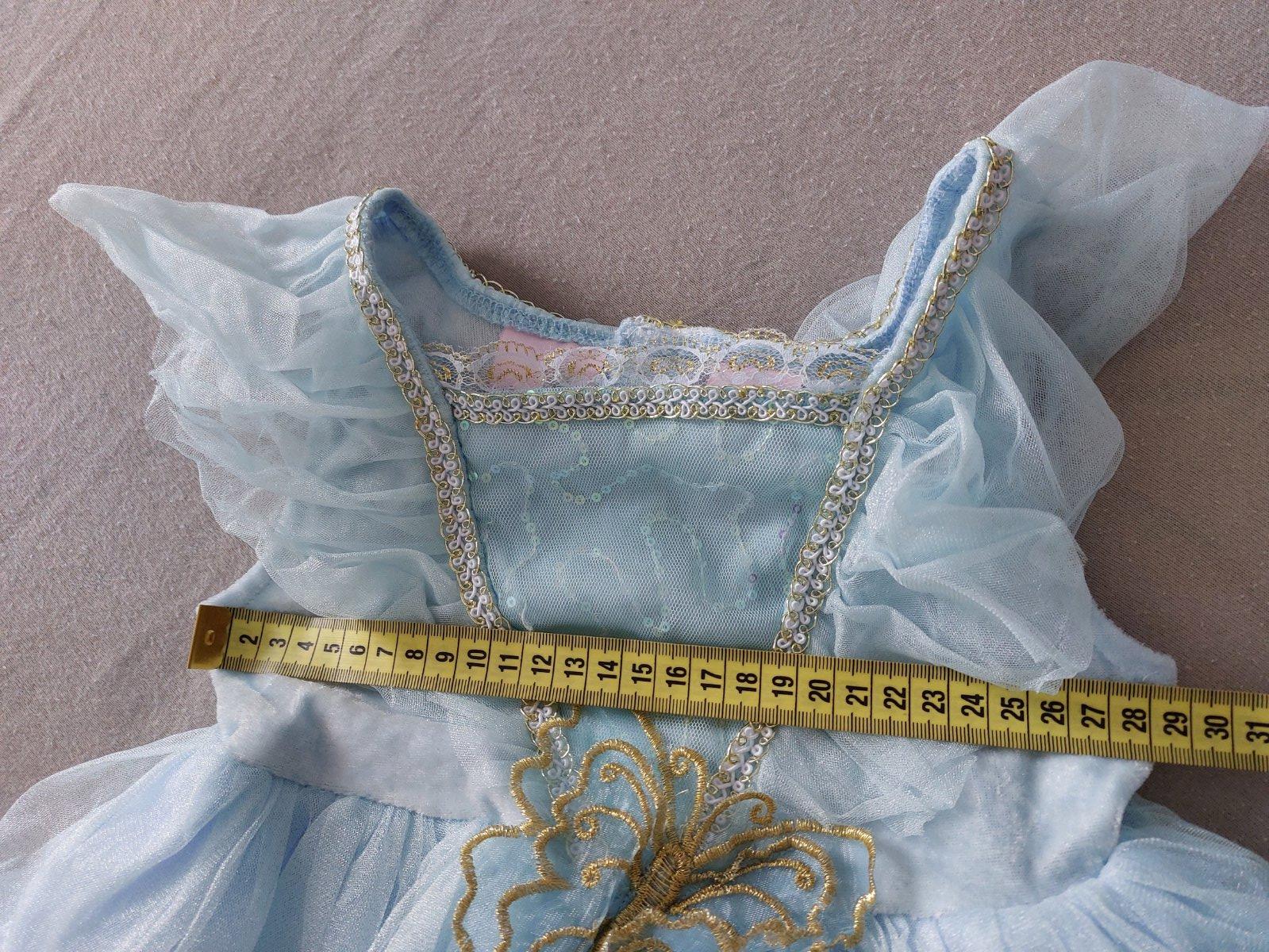 Modre "Popoluška" šaty majú aj celenku a carovnu palicku vsetko v svetlo modrej zladene priamo od Disney ako v ich rozpravkach. Troska pokrčene ako boli v skrini, bez poškodení.