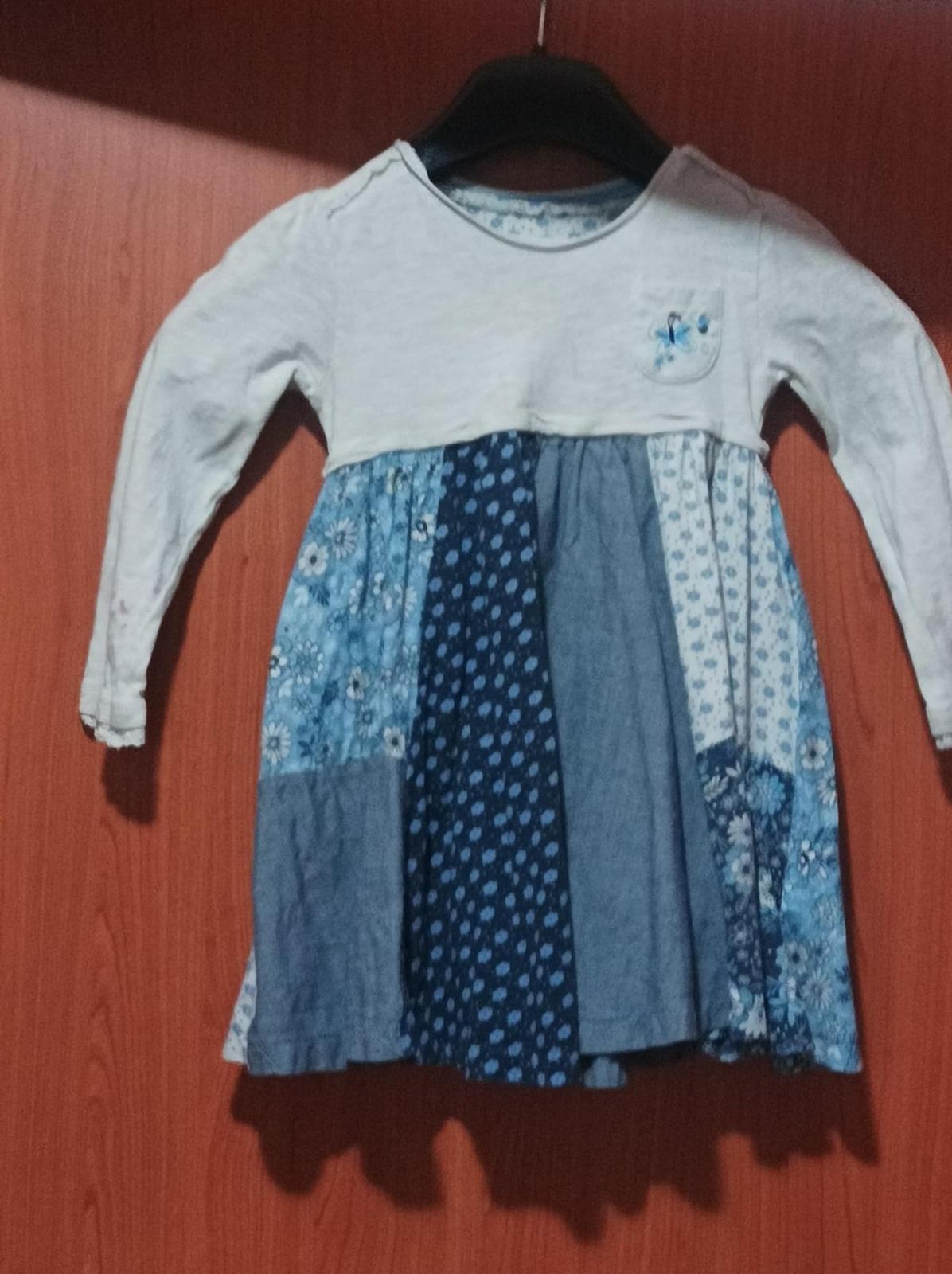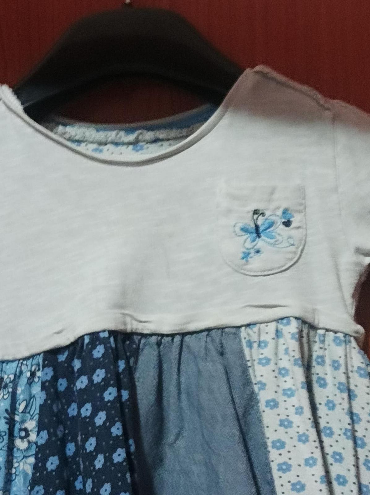 Predám dievčenské šaty zn. F&F veľkosť 92, 3-4 roky, z 95% bavlna 5%. Šaty sú šité v štýle efektných záplat/patcheswork.