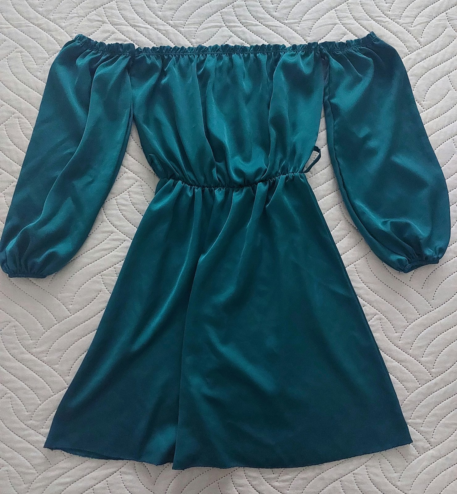 Predám 2x oblečené saténové šaty. Farba je petrolejová, sedia ma xs až M