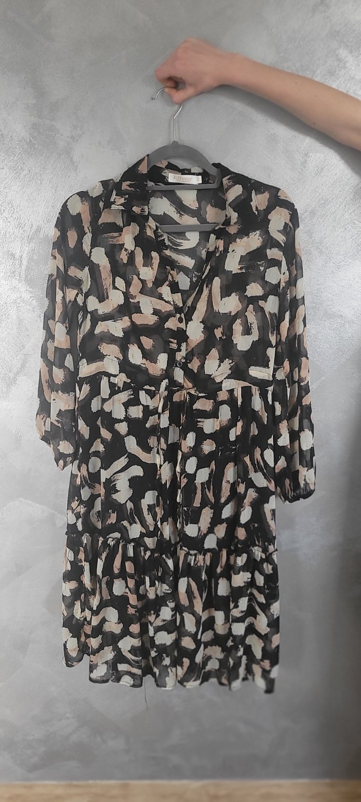 Lahke saty farby: tmavohnedy podklad, kremove a bledoruzove vzory so zlatym.