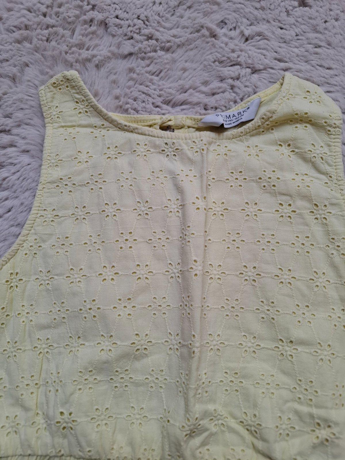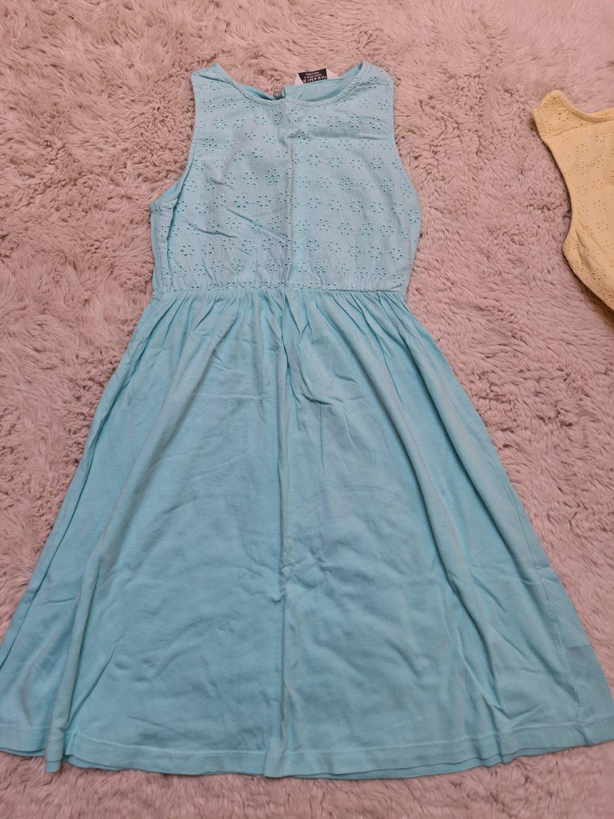 Minimálne nosené šaty, zn. Primark, veľkosť 152, na žltých je mala bodka pri leme na sukni asi z pera. Cena spolu 6 Eur