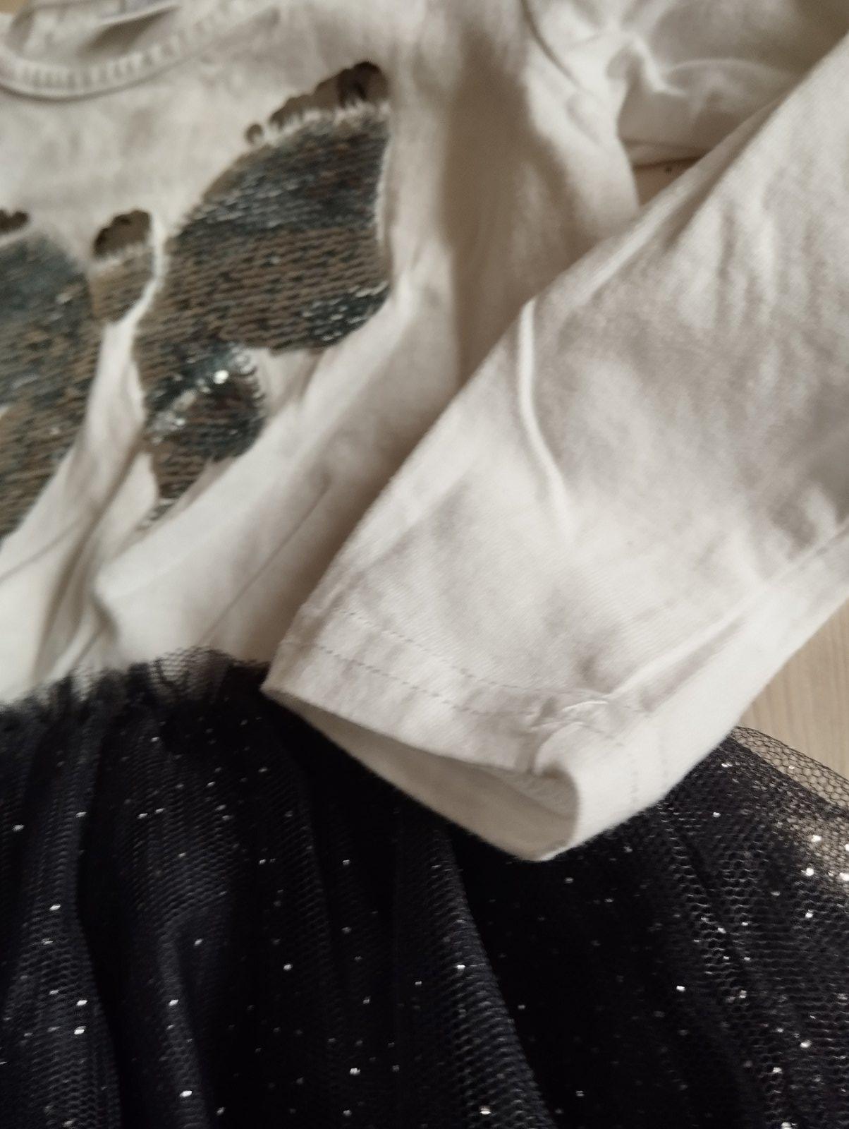 Oblečené raz, ako nové, farba biela plus antracit, dĺžka od pleca 53, rukáv od krku 35, šírka cez hruď 26cm, váha cez 100g.