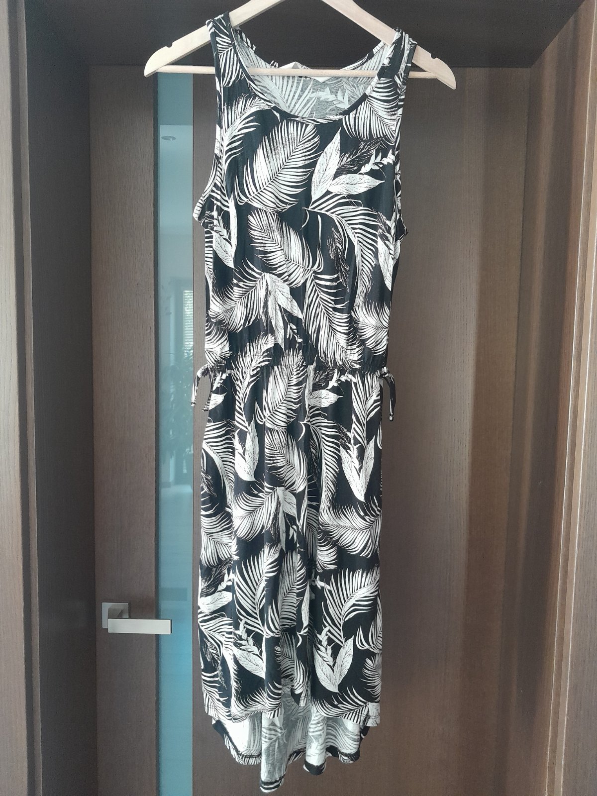 Dievčenské šaty v super stave. Kupované nové, po jednom dieťati. V páse gumička. Asimetrické, zadná časť dlhšia (110cm) ako predná (97cm). Šírka v podpazuší 41cm. Pas v kľude 32, natiahnutý 45cm.