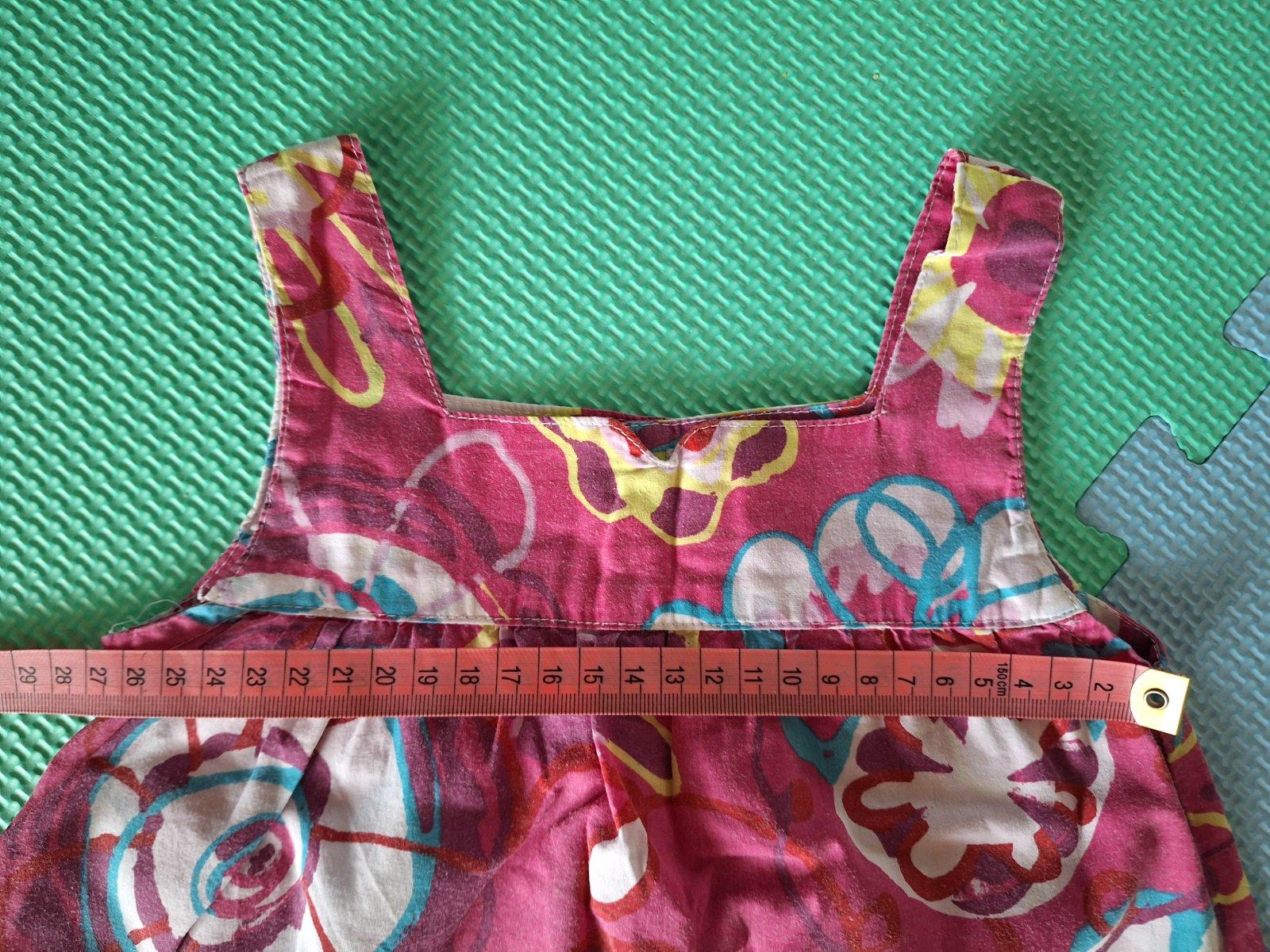 Krásne pestrofarebné šatky, vôbec nenosené. Je možné pod ne nosiť tričko. Je písaná veľkosť 110, ale podľa mňa sa dajú nosiť oveľa skôr. Keďže rastú s dievčaťom, najprv sa dajú nosiť dlhšie, a poto...